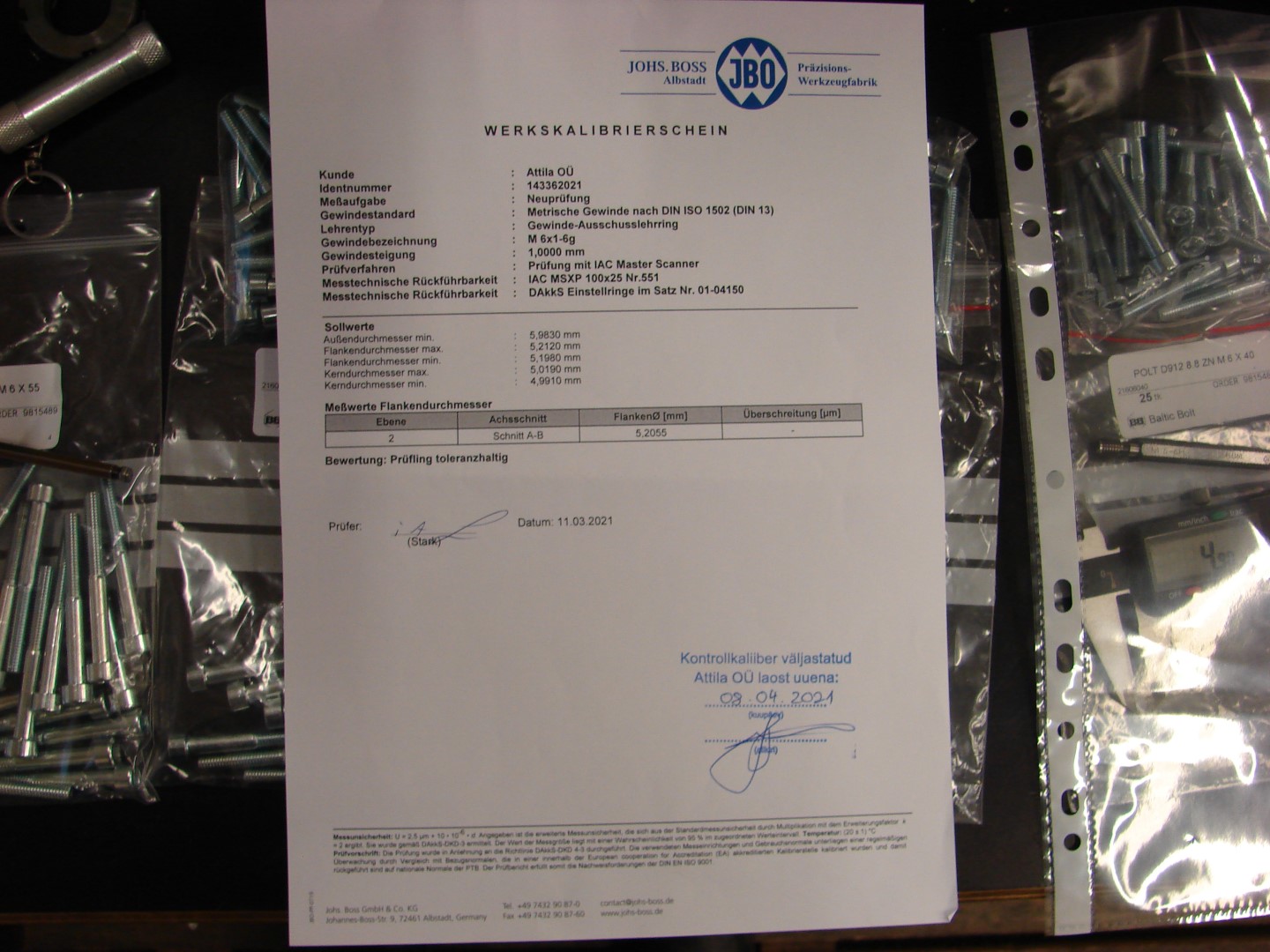 Komplekskaliibrid M6-6g ja dokumendid neile.