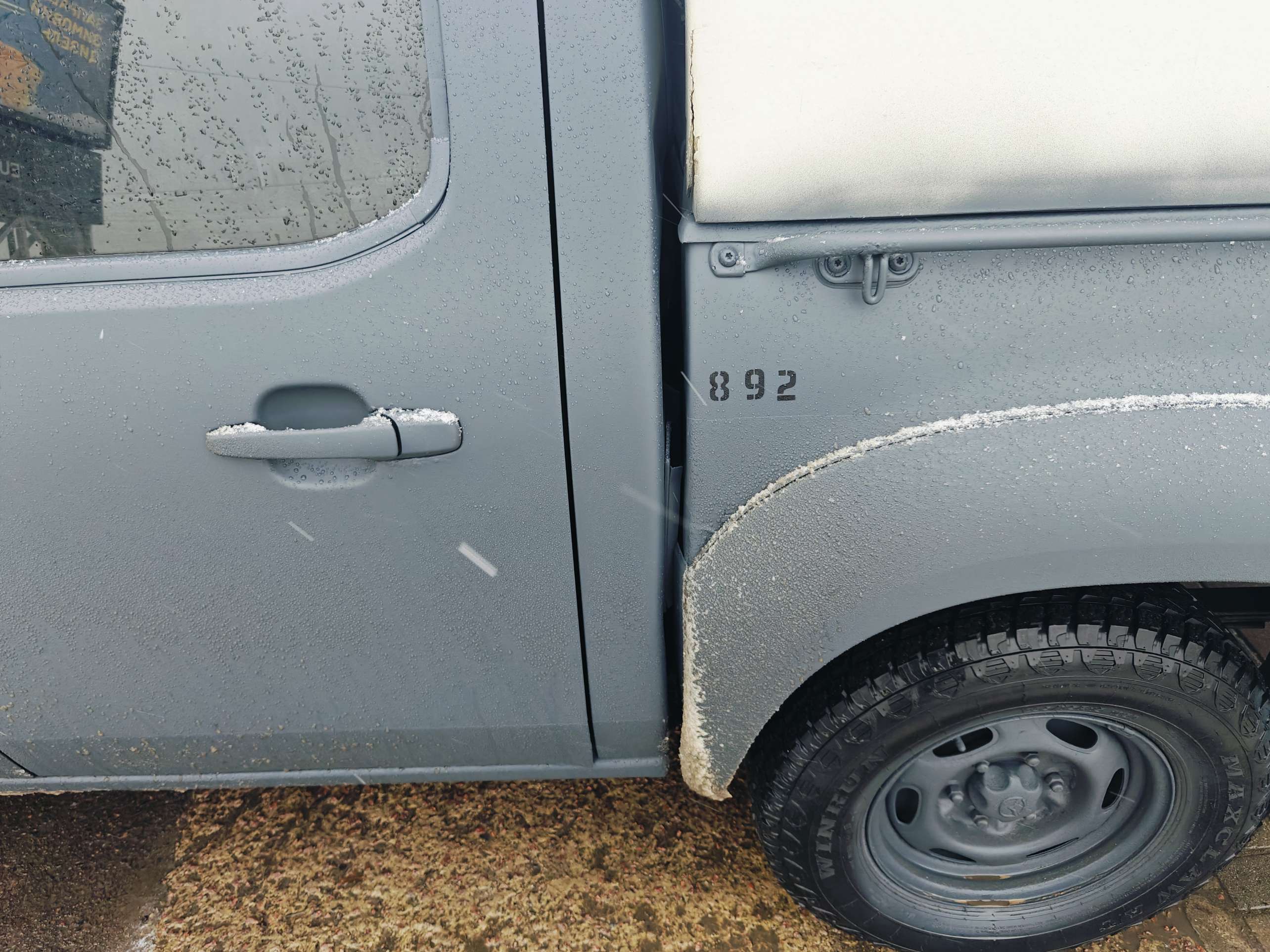 Mazda värvus halliks. Kohalikule maalrile on see 892. rindeauto, mille ta omast vabast ajast ja töö eest tasu küsimata värvis.