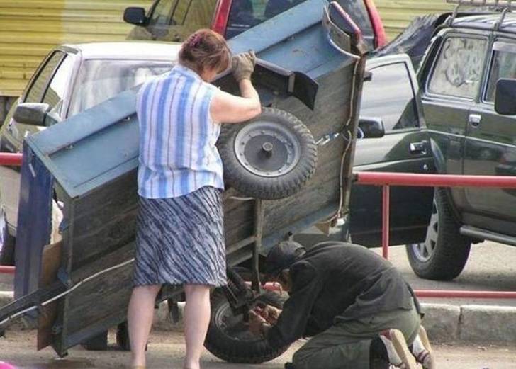 "No tere hommikust! Mina lükkan elu eest, aga tema istub sees ja sõidab!"