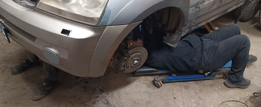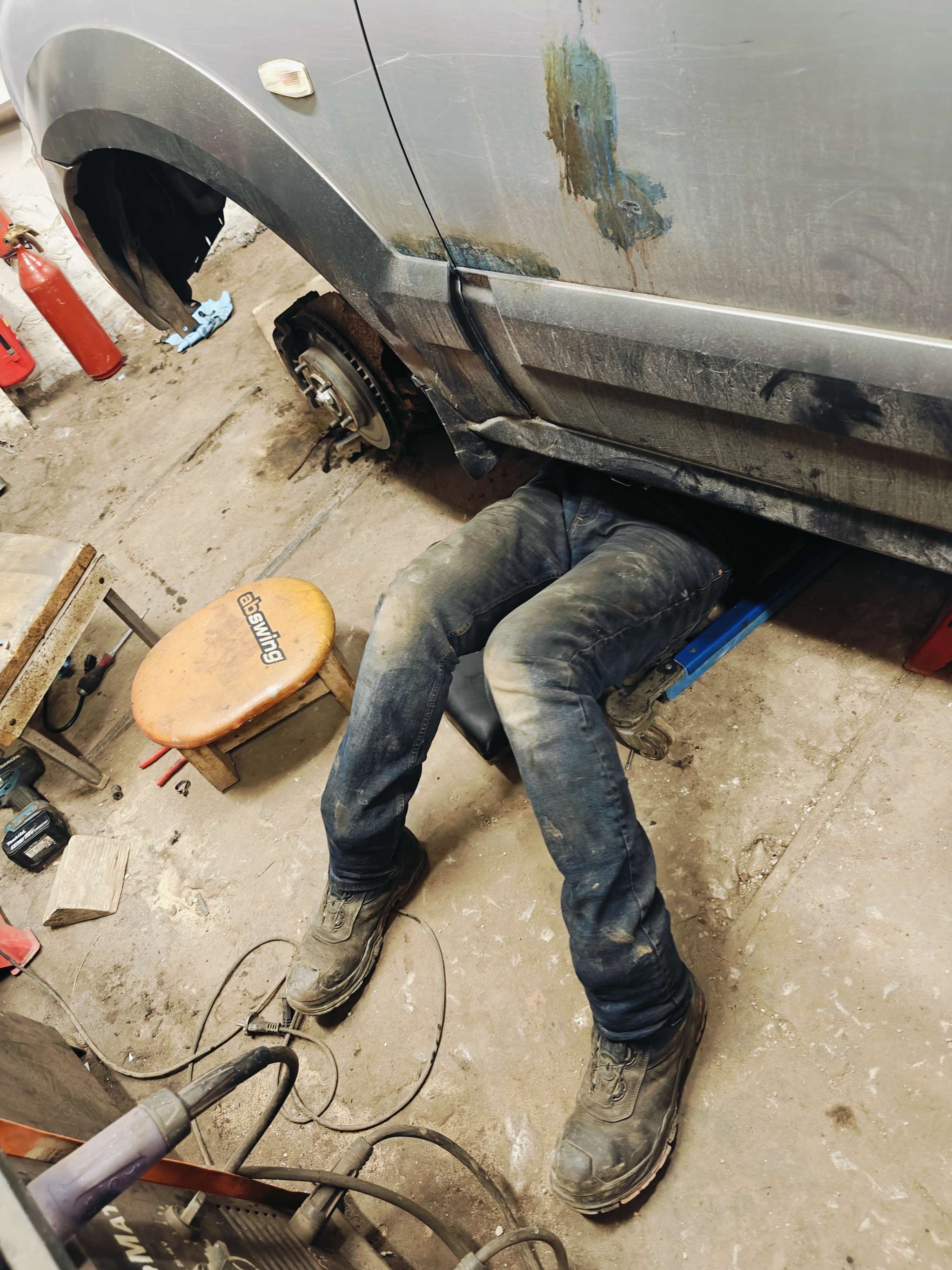 Torude ragamendi kättesaamisega nähtud vaev polnud pooltki sellest, mis asenduse mootoriruumist läbiajamine nõudis. Küljest läks esisilla kardaan ja roolikardaan ja kaalusime ka vasaku veovõlli eemaldamist.