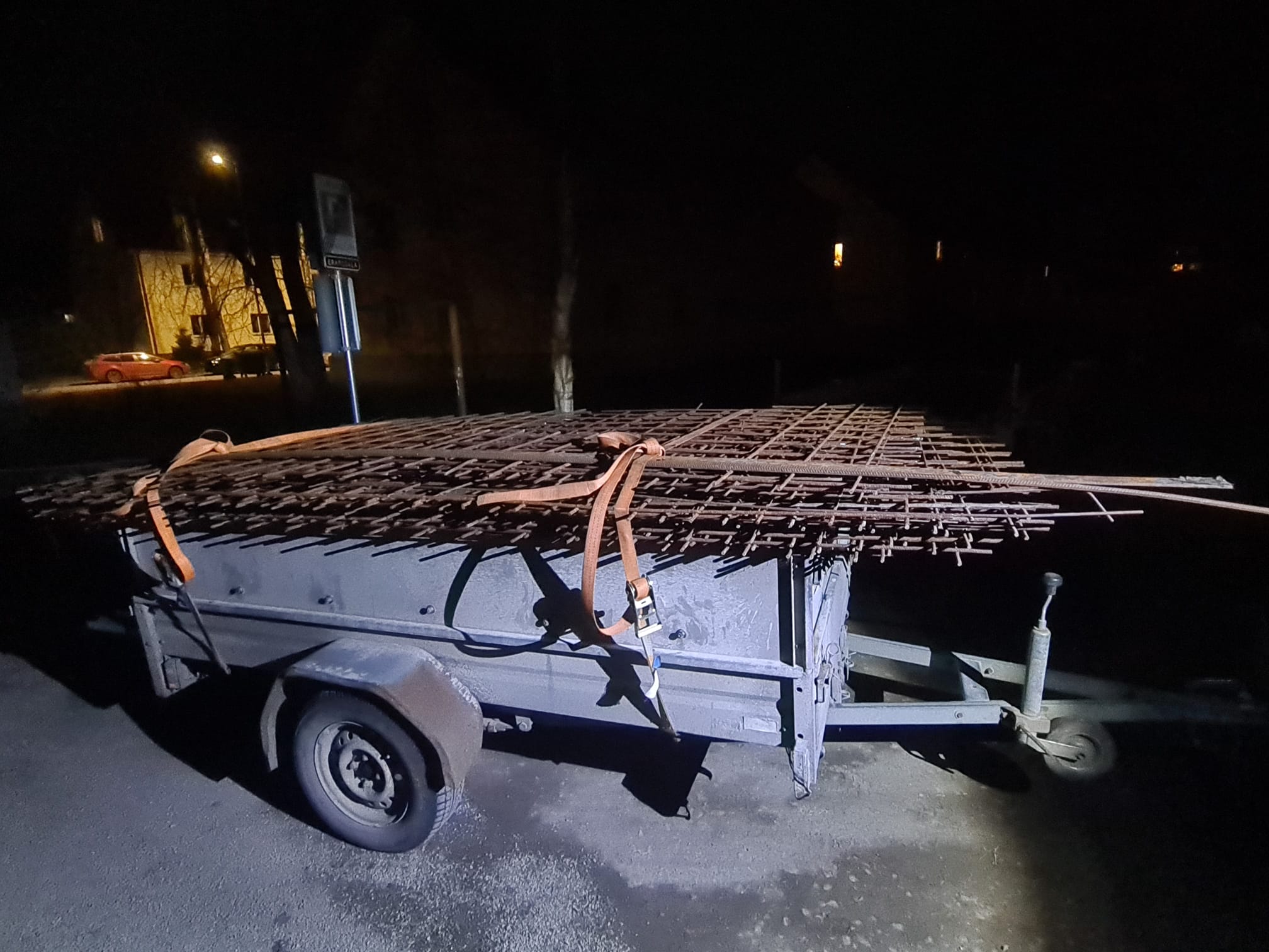 Peale lõunat ladusin käru peale 8mm armatuurvõrgu. Seda on imelik rauda viia. Vaatasin, et Espakis maksab 8mm 1500x3000 võrk 47.- €. Koormas on 13 täissuuruses võrku ja lisaks hunnik poolikuid.