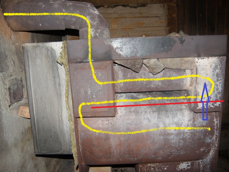 Samas saun. Üks ahjutäis on ära põlenud, lähen puid lisama. Temperatuuride erinevus peaks nagu päris suur olema, tõmme teoreetiliselt hea. Tegelikult tahab suits ja lausa leek peale uue ahjutäie süttimist hoopis uksest välja ronida.