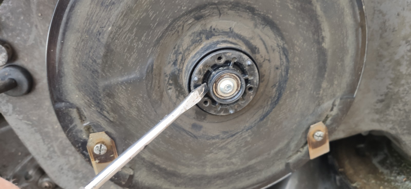 Lahkasin altpoolt ja esialgu tundus, et mootori sees on laager väsinud - keerutamisel oli tunda kuulide "jõnkse" vms. Panin prooviks ainult mootoriga tööle - toimis kenasti vaikselt. Uurisin võllil olevat koostu ja ei mõistnud esialgu, miks on rootoril veel laager, mis korpuse külge ei kinnitu. Lähemalt vaadates 2 üherealist laagrit - üks käis kenasti, teine oli kergelt kinni (masin oli nädalakese seisnud).