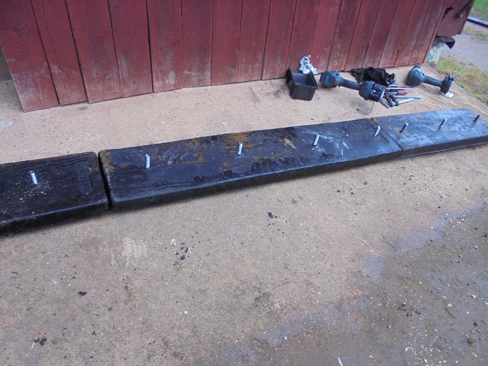 Seejärel sai see latt asetatud kummide rivi peale ja need augustatud. Poldid läbi ja tänu latile tekkis pikk monoliitne tükk.