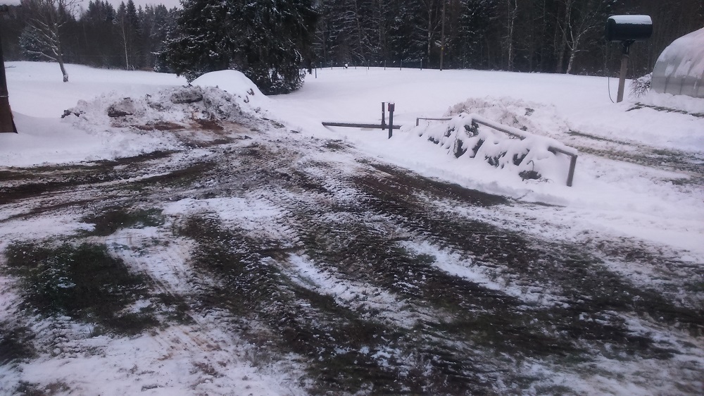 Tegelt kõrgele tõstmine on päris hea, saab rohkem lund väiksema ala peale. Näiteks siin näha, kuidas ma Jumzi sahaga toimetasin.