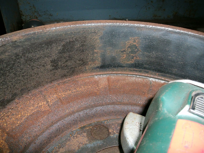 Seekord lihvisin trumli tööpinda esi-parem rattal jöulisemalt, sai rellaka terasharjaga kallal käidud (eelmine ratas esi vasak lihvisin liivapaberiga), no ikka korralik korrosioonikiht oli peal, lihvisin köik maha kuniks läikis: