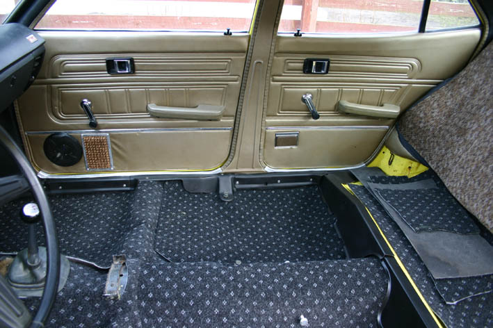Jah, kui päriselt aus olla, siis polnud põrandale paigaldatud materjali puhul tegemist just spetsiaalselt autode põrandaks mõeldud kattematerjaliga, vaid vaibaparadiisist ostetud alt kummeeritud vaipkattega. Leidsin, et tegemist pole eriti suure patustamisega, seda enam, et palju toda põrandat porimattide alt ikka näha jääb. Teiseks kergema vastupanu mineku põhjuseks oli tõsiasi, et paraku polnud mul aimugi, milline oli auto põrand originaalis välja näinud. Too tumesinine vaipkate, mis auto põhja minu omandusse jõudes kattis, polnud samuti kindlasti tehasetoodang. Seda järeldasin nii töö kvaliteedist kui ka sellest, et vaevalt oleks tehas kollastes-pruunides-kuldsetes toonides salongi paigaldatud tumesinine põrandakate.