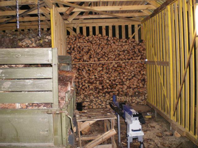 Puud töstan kastist puudelöhkujale ning säält edasi löhutuna otse riita. Vöimalikult vähe ümbertöstmist. Järgmine talv on puud kuivad ja läevad kuurist otse majja, ahju.