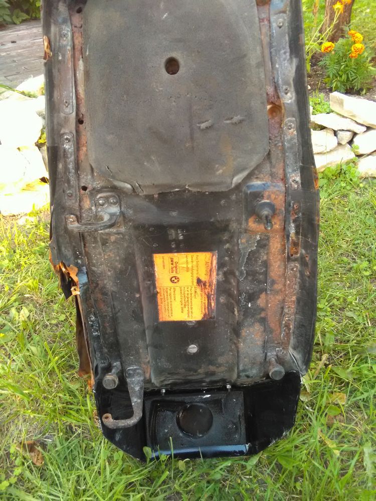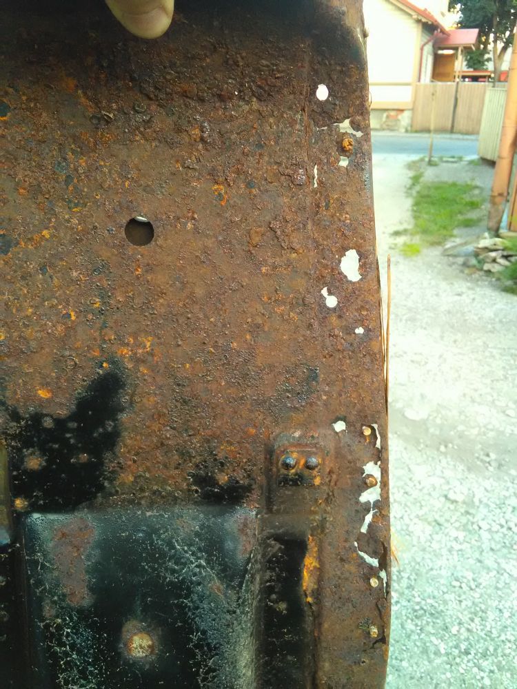 Põhjaplekk on aga päris pudru. Ta on ka keerulise konstruktsiooniga, õnarusi täis, keevitada täielik keeks. Plekk ise väga õhuke, nüüd siis rooste poolt ka õhemaks lihvitud. Ei teagi, et kuidas teda keevitada. Kerge see olema ei saa. Kas vahetada nii palju sirget plekki, kui õnnestub ja siis hiljem klaaskiudriidega ära tugevdada? Eks selle sadulapleki parandamine keevitamisega on tegelikult enda lohutamine - õige oleks uus sadul vaadata, plekk on liiga läbi. Aga usun, et hetkel ikkagi teen tast nii hea saia, kui saan ja panen uue naha peale. Kõrvalseisja jaoks pole mingit vahet, enda kuklas on siis teadmine, et ega see plekk hea seal all pole. Ainukene hea on plekil see, et ta hoiab oma konstruktsiooni veel ja näpu vahel tükkideks ei lagune - ehk kui plekil servad ära vahetada, siis võiks klaaskiudriidega ta tugevaks saada küll.