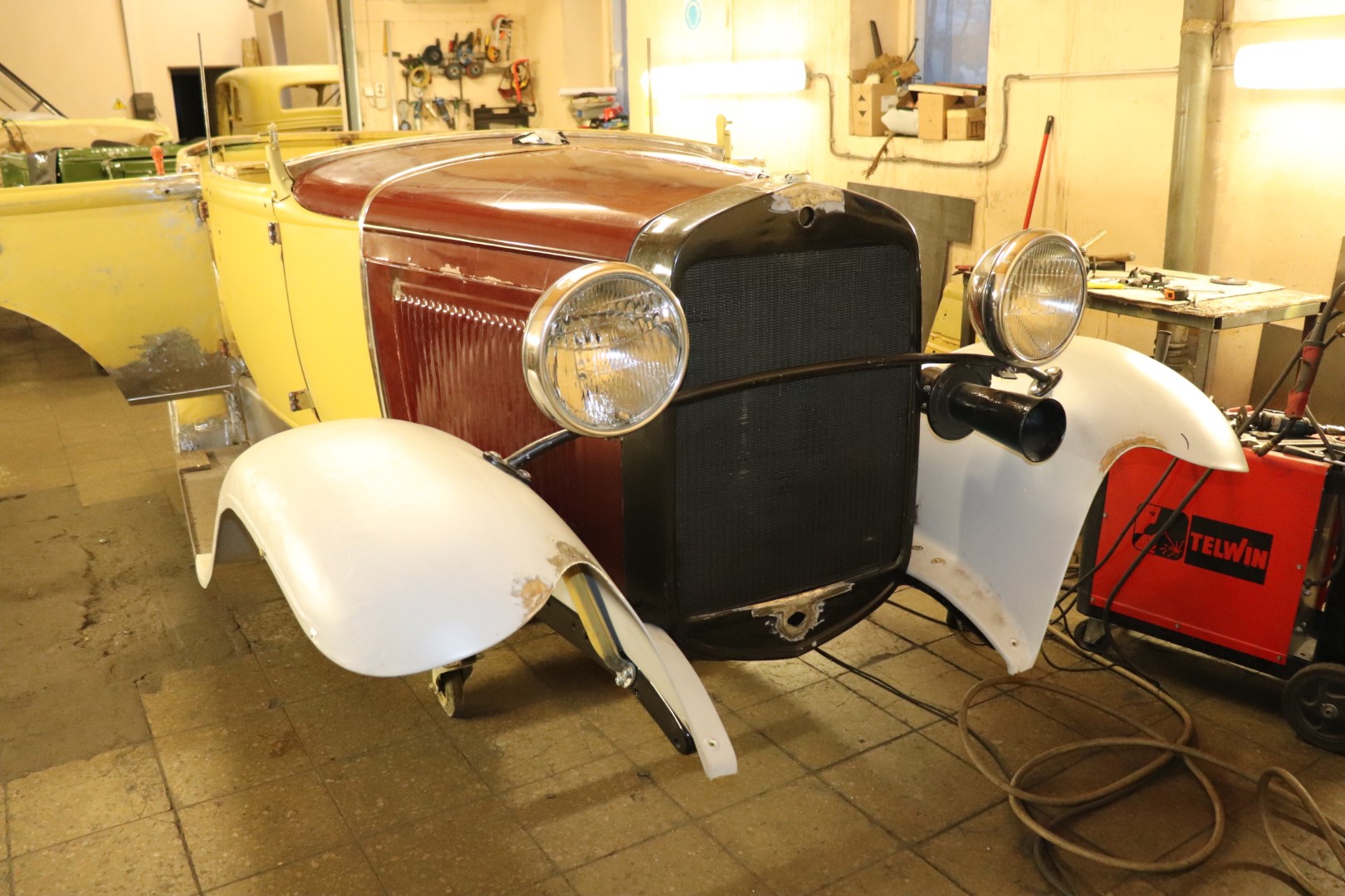 Kui sa vaatad neid pilte, mis Taavi sellest A-st on postitanud, siis isegi tehase liini pealt tulevad igasugustes variantides aparaadid. Tõenäoliselt algaastatel kasutati rohkem USA-st Fordi juppe. Kuna minul olevad paberid on aasta arvuga 1934, siis oli juba Fordi juppe küllaltki vähe, aga ikka oli. Ühesõnaga püüan jälgida kõiki eripärasid, mis GAZ A-l olid. Praegustel piltidel on näha siis radika raami, mille sain kaasfoorumlaselt Sidorovilt ja on kindlasti GAZ AA oma (need olid ühesugused A-ga), kuigi piltidelt on näha, et olid kasutusel ka Fordi omi. Tagavara ratta kinnitus on ka GAZ oma. Fordil olid need ees poritiibadel. Praeguses konditsioonis muid erinevusi ei paista, ah ja pasun on ka Vene oma. Muidugi ka raam.
