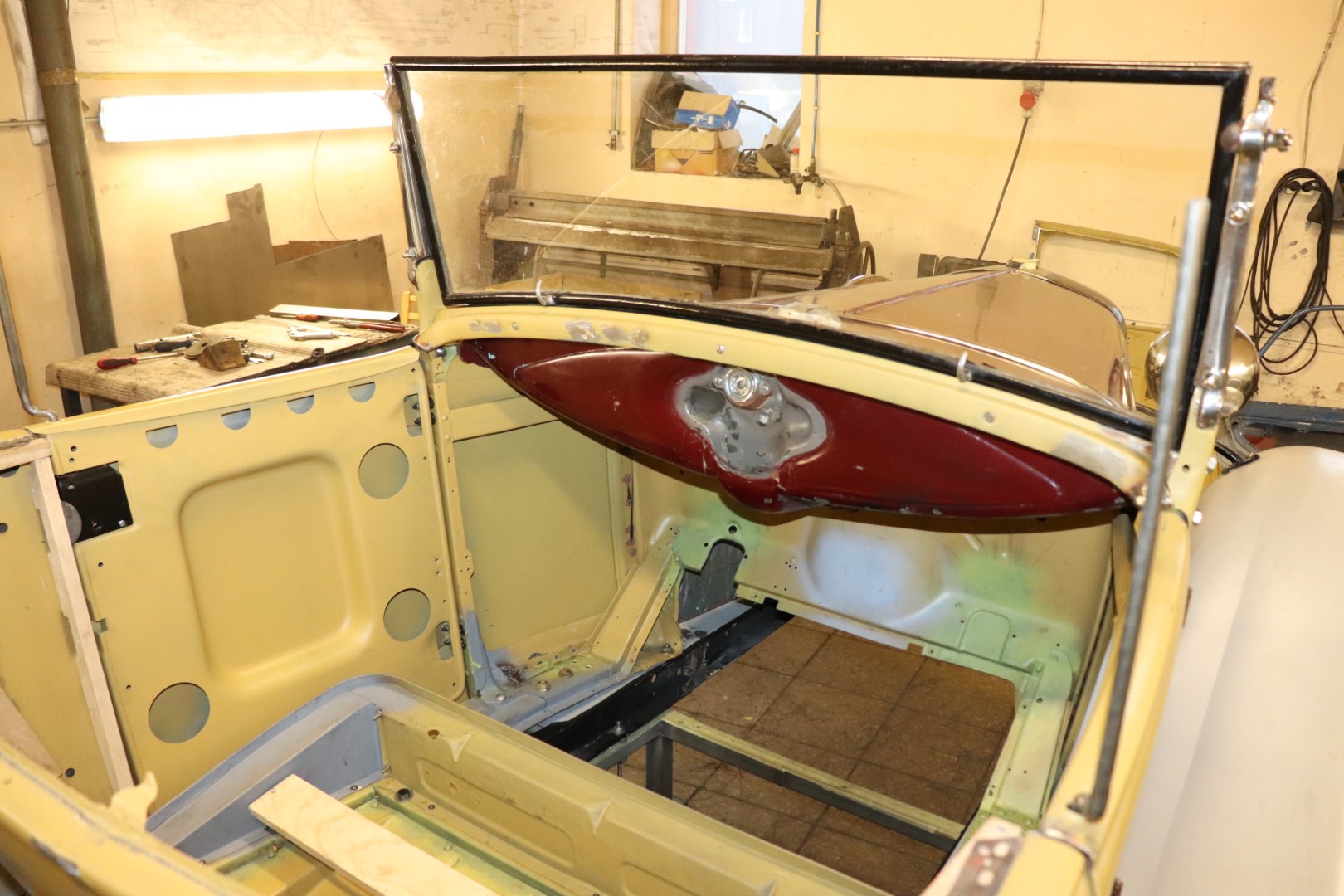 Kuna keevitustööd said tehtud, siis pole pääsu detailide kruntimisest, et roosteuss eemal hoida. Mõned pildid ka auto sisemuses olevatest puitdetailidest, enne kui kruntimise juurde asume. Korraga ka sise ja aluspindadele ka kate peale. Nüüd peaks alusvankri käsile võtma aga ajad on segased. Loodan, et suve jooksul saan auto ikka värvitud.
