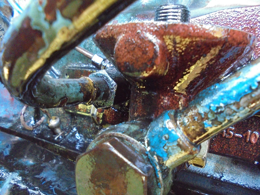 Miskine malmivalu punn on ka olemas, kust ehk saaks õli viisakalt enne filtri maha keeramist välja lasta. Aga no ei, nagu see vene asi ikka on. Midagi nagu oleks ja midagi on nagu puudu. Ehk siis hakka jälle leiutama, kuidas sinna malmpunni sisse ava saaks ja poldi keerme sisse. Puurimine ja keermestamine on nohu, aga vaja kuidagi ka tasapinda saada vaskseibi jaoks.