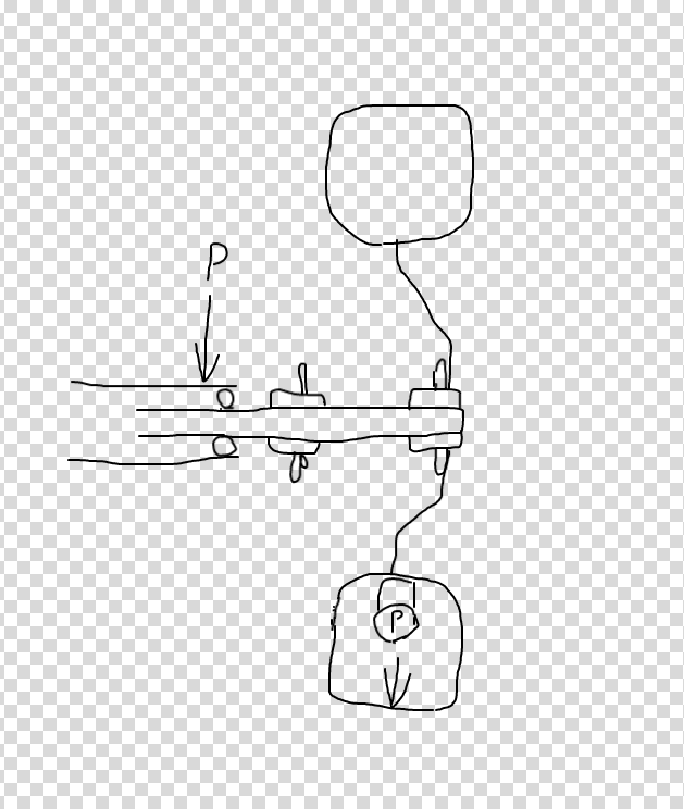 See jõud mõjub otse ülevalt vaid seistes ja P tähega nool võib suure veojõu korral ka horisontaalne olla.