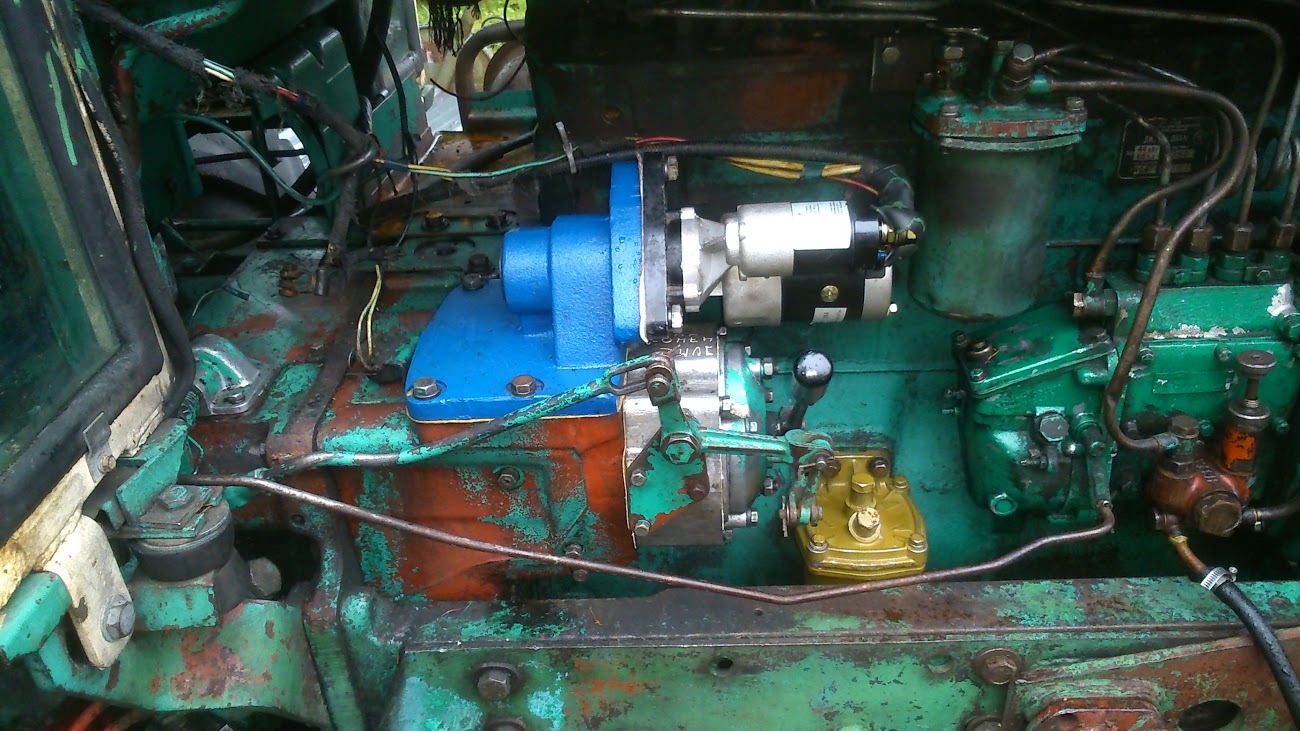 Kuna veel ei ole leidnud pendiksi hoova ümbruse katet, panin asja katkise kaanega kokku tagasi, sättisin peale starteri jaoks vajaliku vahetüki. Starteri panekuks pidi aga jämepuhastusfiltri poti tõstma pisut ettepoole. Selleks tegin lehtmetallist sinna kronsteini alla ja nihutasin teda ühe ava jagu ettepoole. Teen ka illustreerivad pildid mingi hetk. Armatuuri alt leidsin starteri jaoks ka originaal juhtmestiku. Aku kaablid asendasin aga jämedamatega, kuna originaalid olid ikka väga peenikesed, mõeldud nad ju pisikese käivitusmootori starteri jaoks..