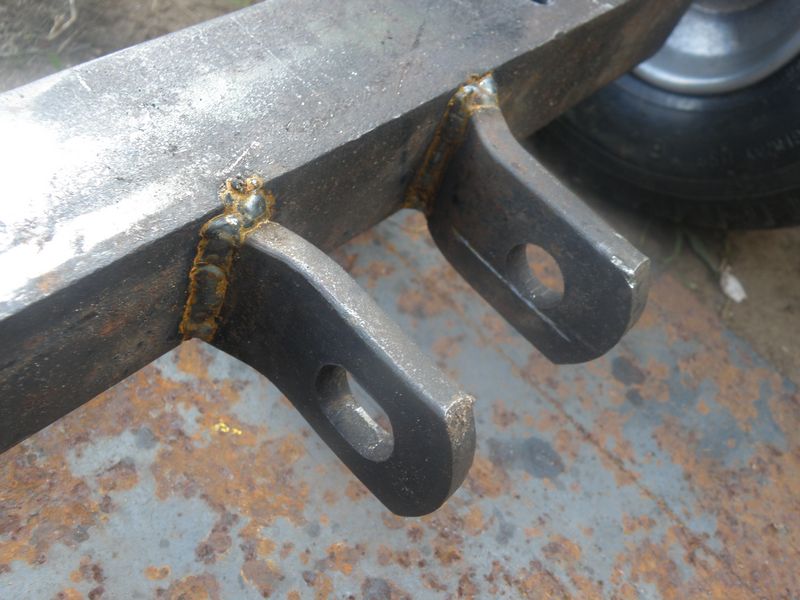Siis mõtlesin, et puurin ikka raamile uued augud. "Ümarkonflikti" lahendamiseks rataste telje juures keevitasin sinna kõrvale teljega sama mõõduga (tingitud rattalaagritest) ehk 16 mm paksused klotsid. Enne küll laenasin küla pealt suruõhufreesi (või kuidas toda asjandust ametlikult nimetatakse, mis õhujõul pöörleb ja otsa käivad viilikirjas asjandused?). Relakaga ei saanud nii kitsastes tingimustes opereerida. Kõigepealt nühkisin siledaks raami all olevad keevitusõmblused, et klotsid paika panna, hiljem ka paika keevitatud klotsikesed. Tulemus selline:
