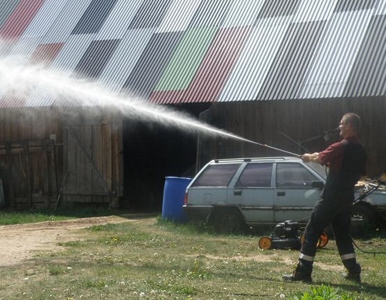 Katse sooritatud 0-kraadi ehk hüperboloiddüüsiga. Ka teisi düüse proovisin ja praktilise tööna pesin muruniiduki puhtaks.