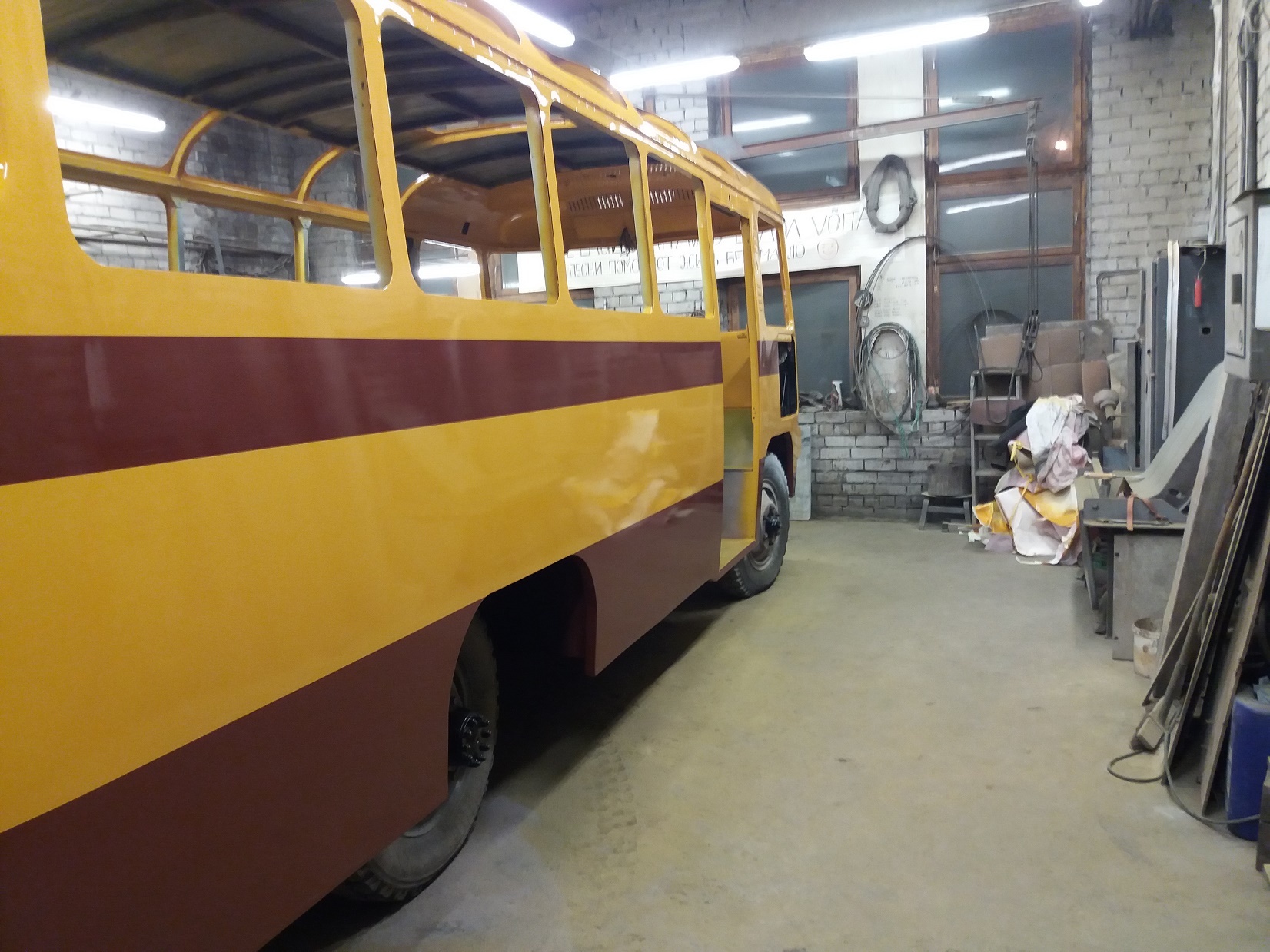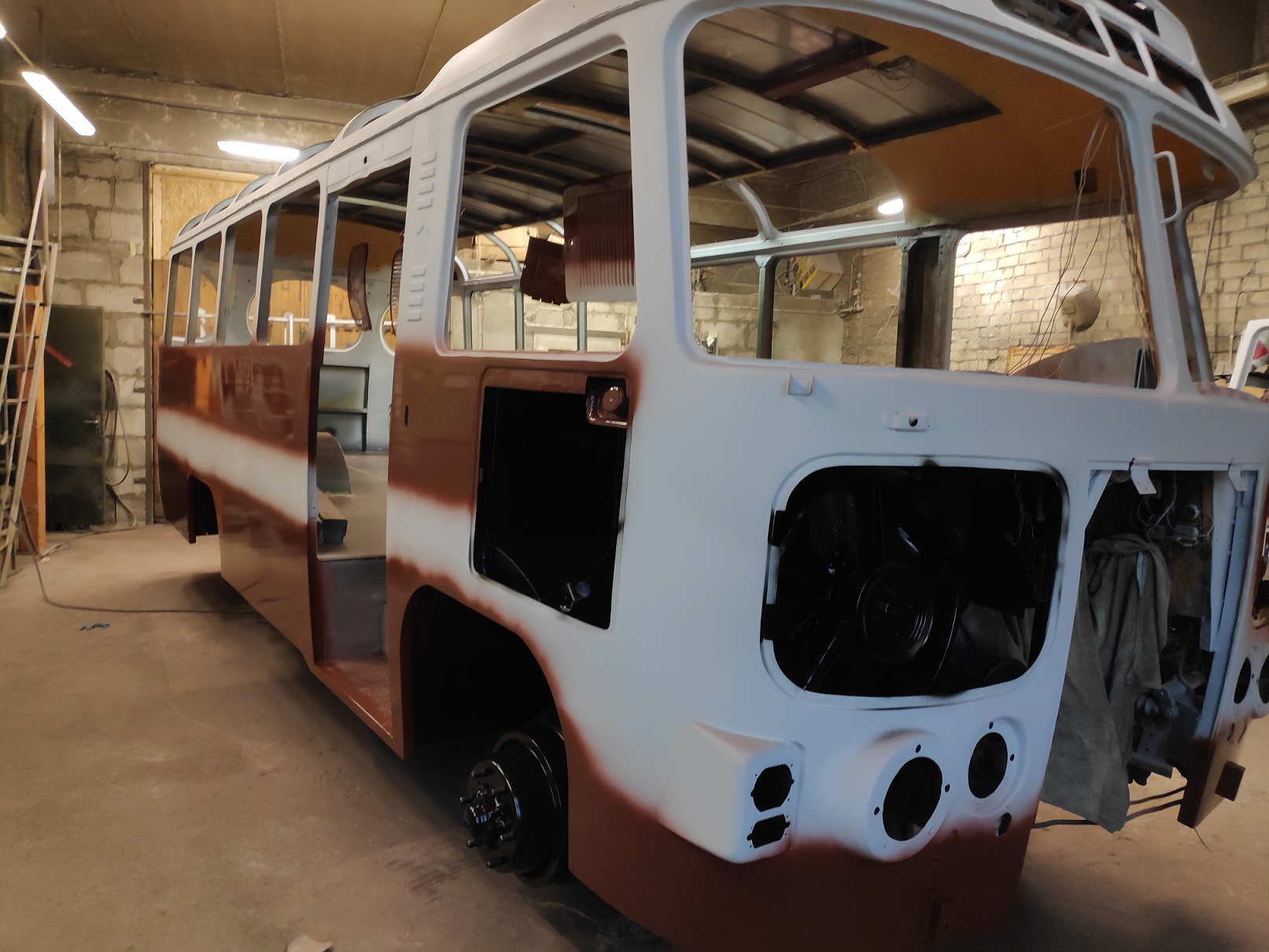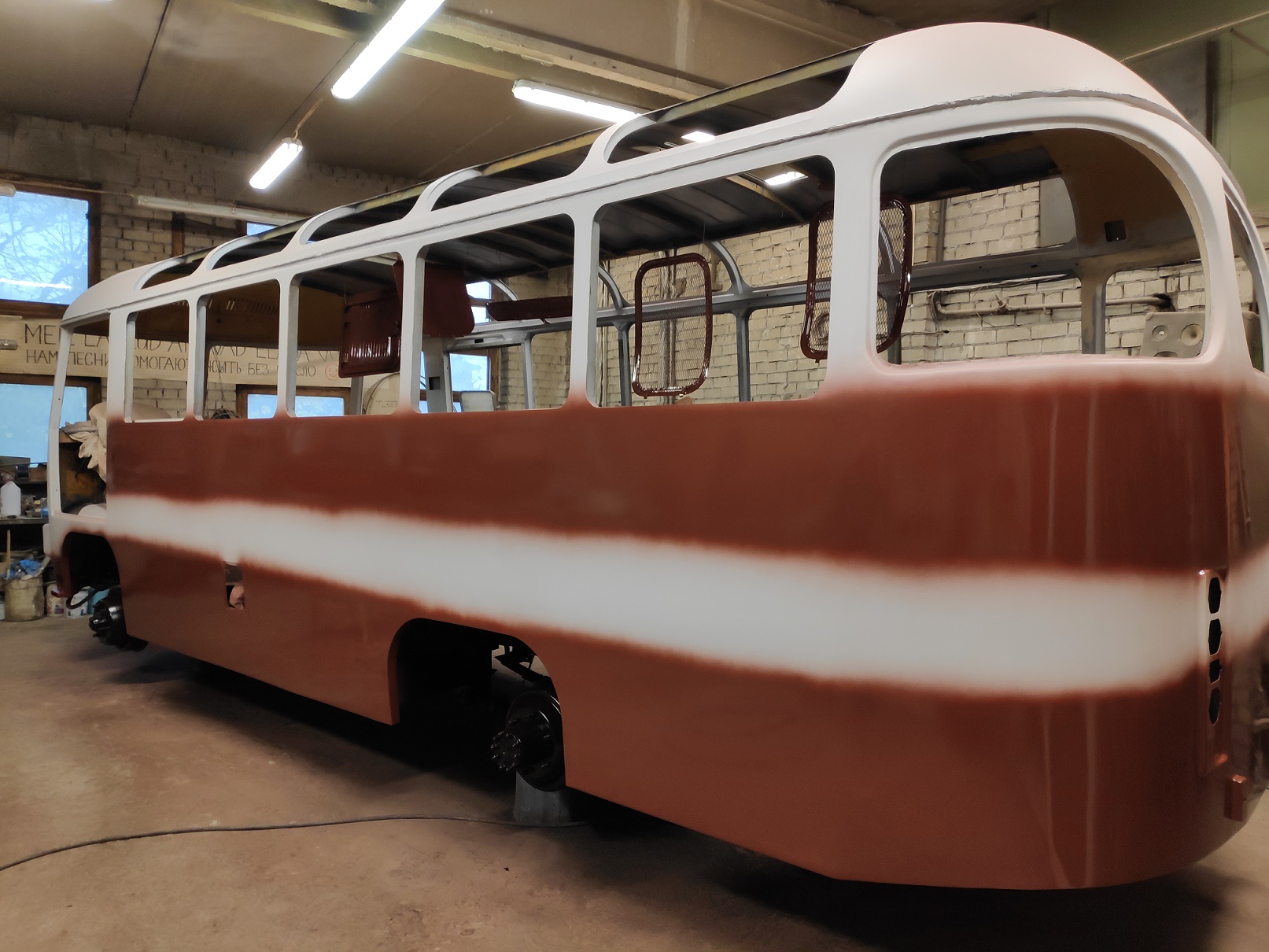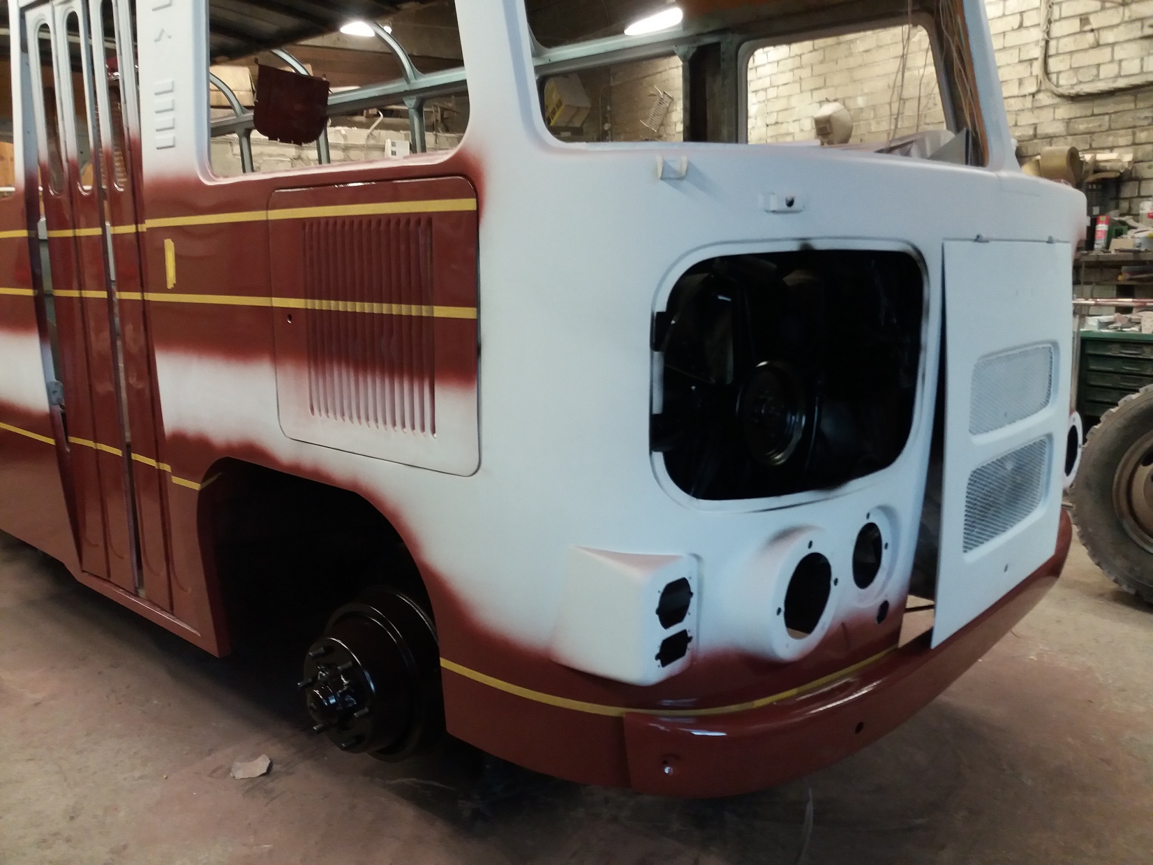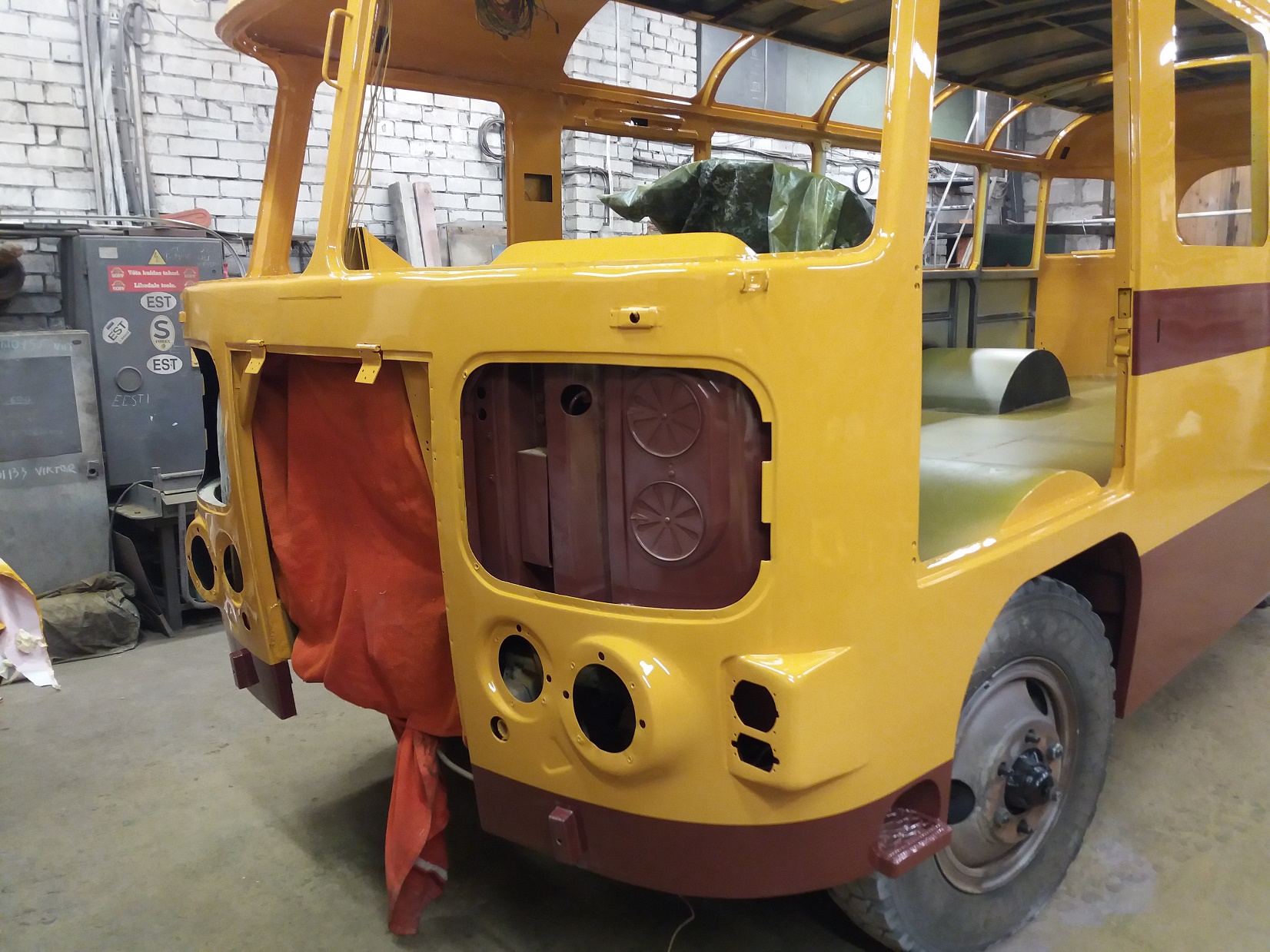 Bussi pahteldustööd on jõudnud lõpule ja peale on saanud krunt ning triipude värv.