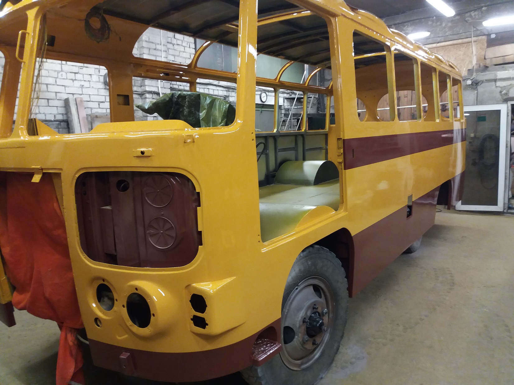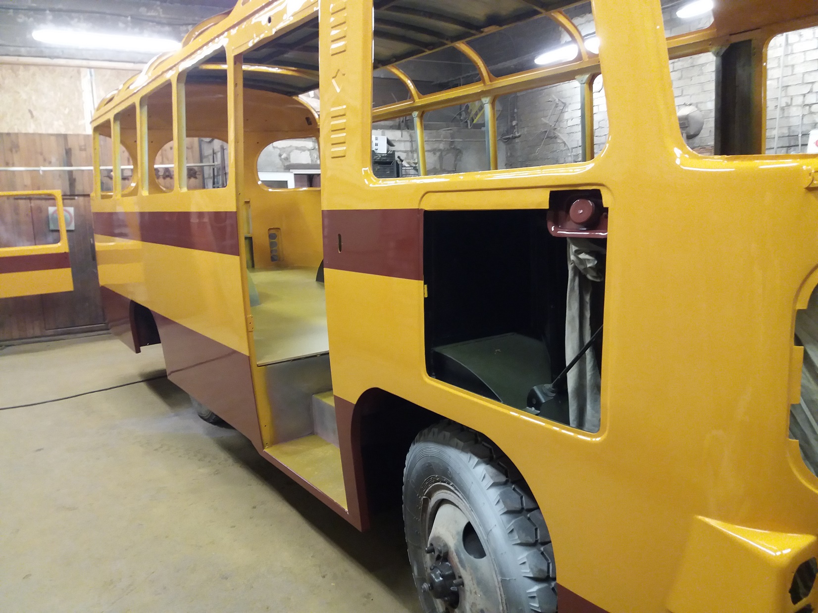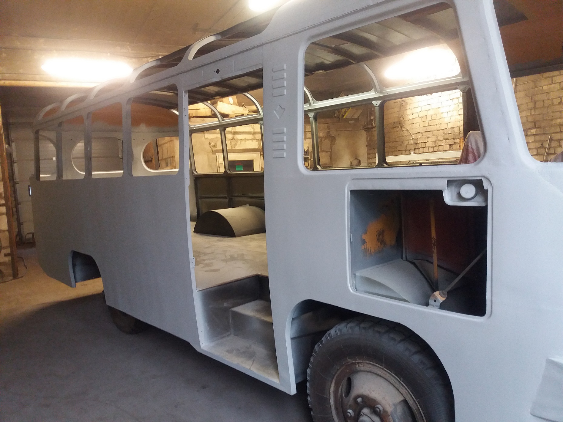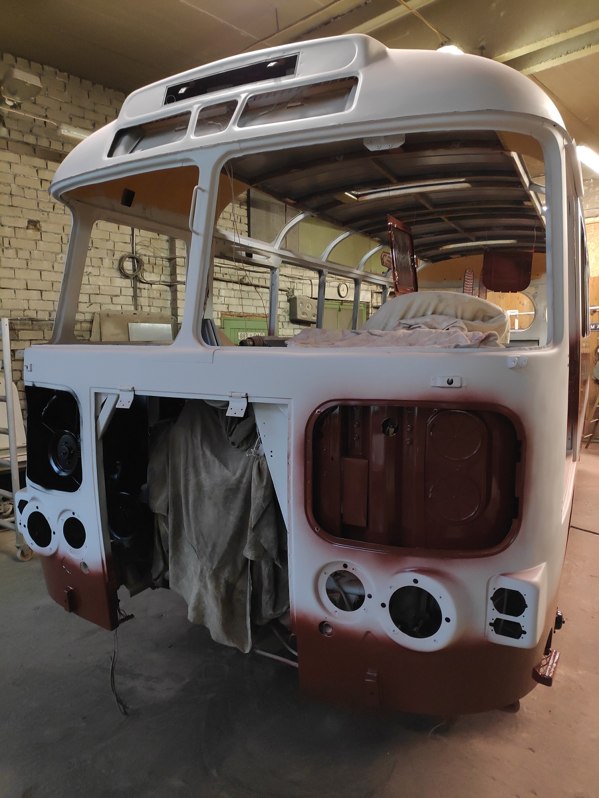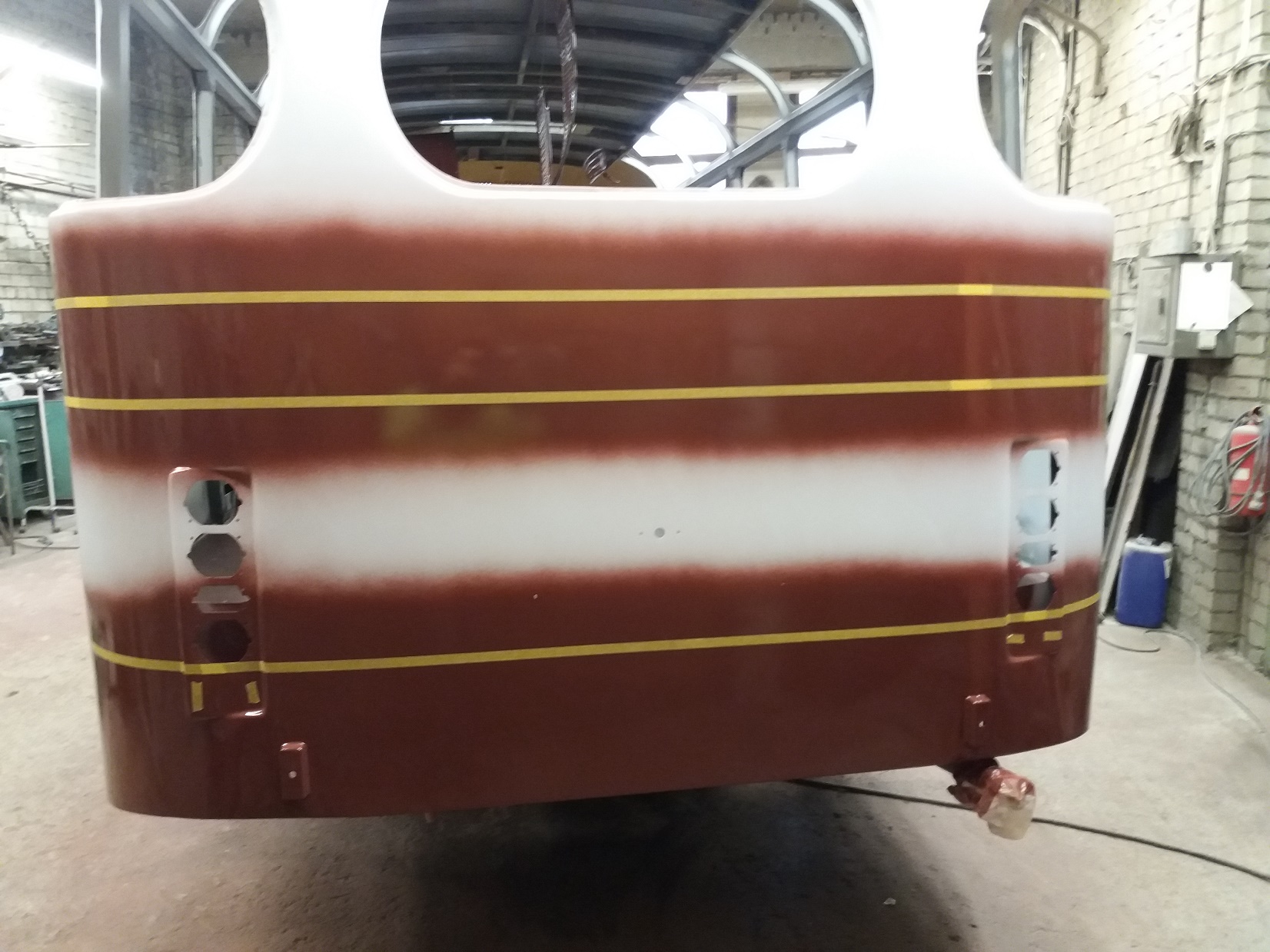 Bussi pahteldustööd on jõudnud lõpule ja peale on saanud krunt ning triipude värv.