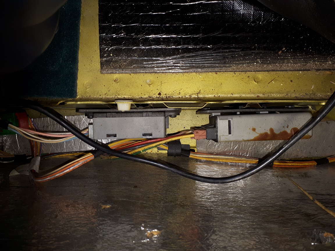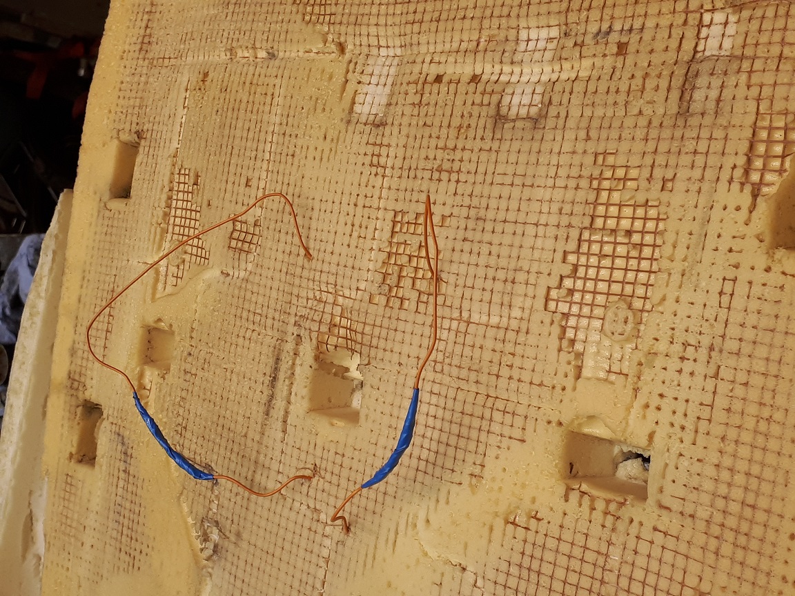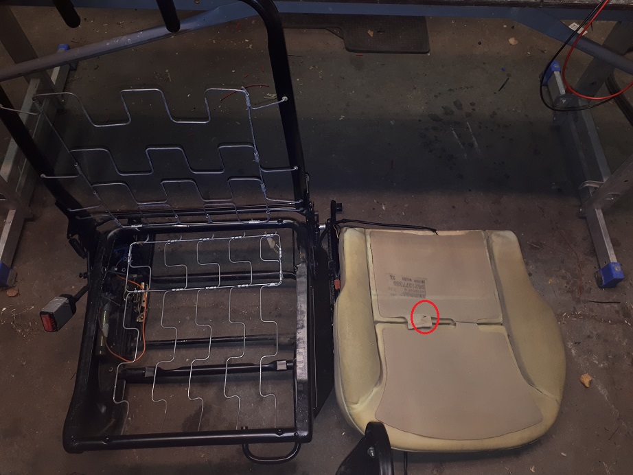 Lahti võttes mõõtsin testriga istmesoojenduse korrasolekut. Nagu arvata, oli see katki. Tavaliselt läheb juhe katki padja keskosast kinnitõmbamise koha pealt. Nii ka siin. Katkine koht ka kohe silmaga näha (kõrbenud).