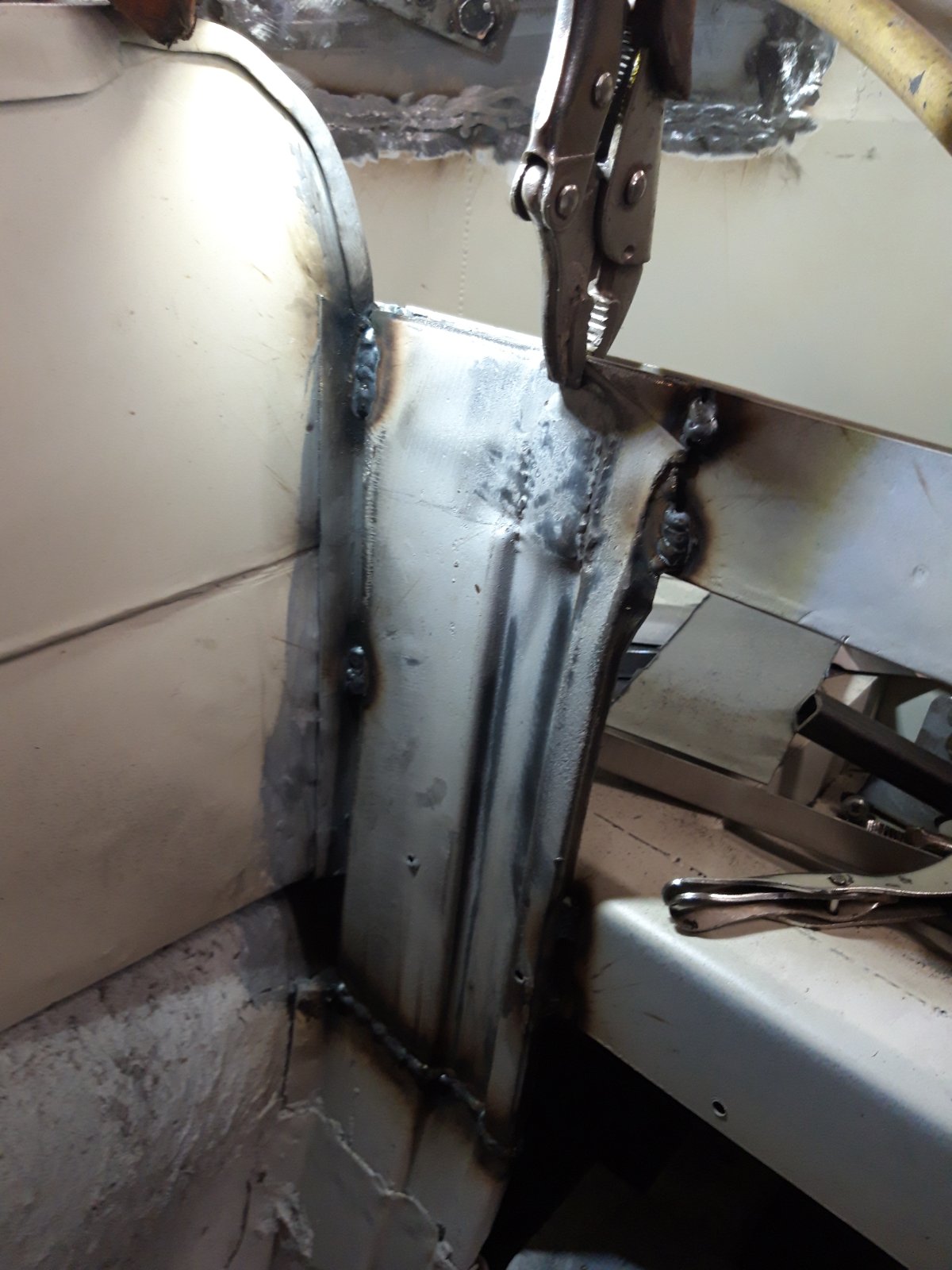 Nüüd siis vasakpoolsete uste sisemised ääred. Paika said ka tagauste käepideme trosside tagumised kinnitused ja uksepiirajad. Samuti keevitasime külge esimeste uste siinide kaitseplekid, mis kaitsevad siine uksepiirajate eest.