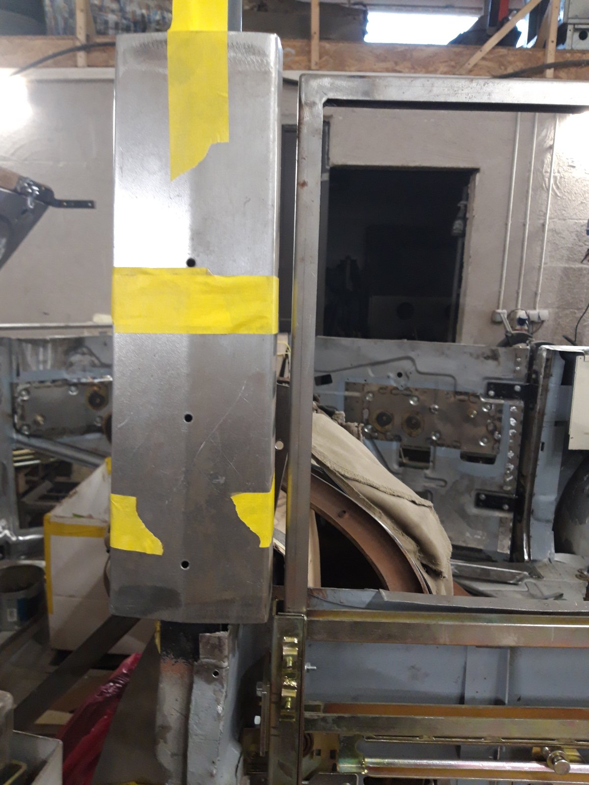 Paika said tagumised veerandsilindri-kujulised uksepostid. Nende ülaosadesse ja külgedele said tehtud liistusüvendid, mille sisse tulevad puiduliistud või tugevam papp, kuhu kinnitatakse pärast nahk-polstri naelutusribad. Samuti paiknevad nende postide küljes tagumiste eemaldatavate uksepostide jalgade kinnitustugevdused. Veel proovisime peale vasaku külje mõlemat eemaldatavat ukseposti ja ülestõstetud asendis aknaraame. Postide külge kinnitub mõlemale poole liist koos tihendiga. Viimastel piltidel on näha neid liiste ja aknaraami nende vahel, tihendeid veel pole peal ning liistud said hetkel teibiga kinnitatud.