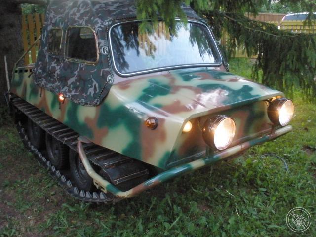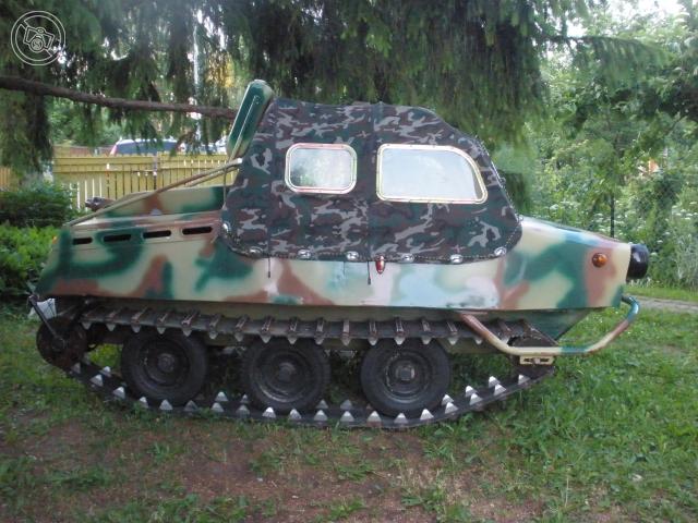 On endalgi mõttes midagi taolist ehitada, ainult väiksem. Maastikurehvid on sigakallid, muidu teeks ratastega. Roomikuga on jõuülekanne lihtsam, pole vaja kettide ja ketiratastega mässata, aga probleemiks on just roomikumaterjal. Roomik kannab pehmel pinnasel ka paremini, aga miinuseks on mahatuleku või katkimineku oht mülkas. 8-rattaline peaks koju lonkama ka siis kui 2 rehvi katki või kasvõi rattad otsast ära. Nii ma mõtisklen ega oska veel otsustada, kumb variant teha. Oleneb vist sellest, mida kätte saab.