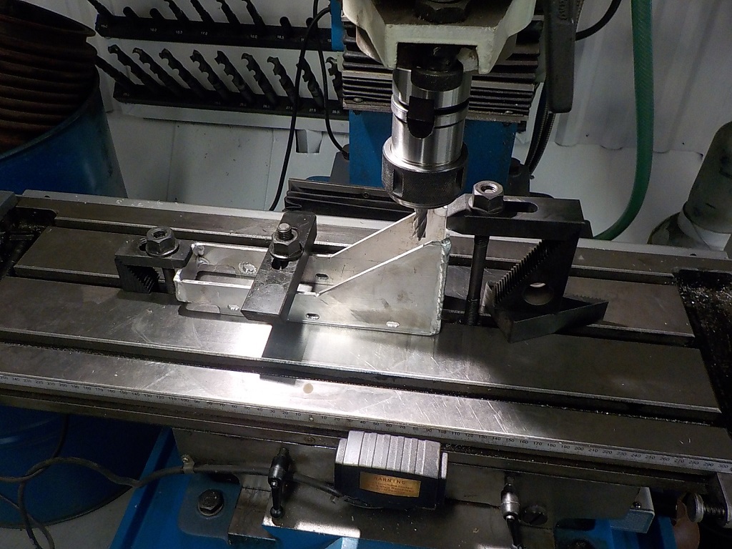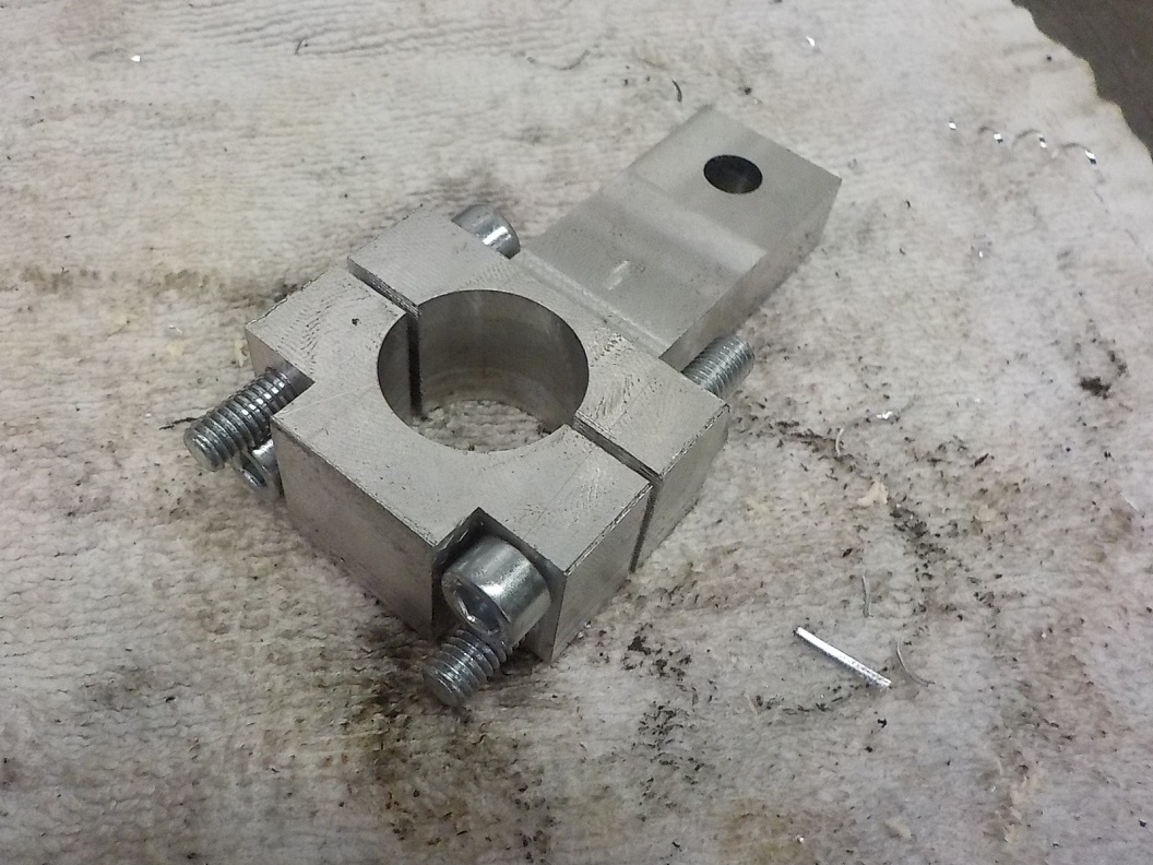 Detail sai siis löpuks enam-vähem välja freesitud. Poltidele avad sees ja varre tegin öhema kui detailipaksus ise.