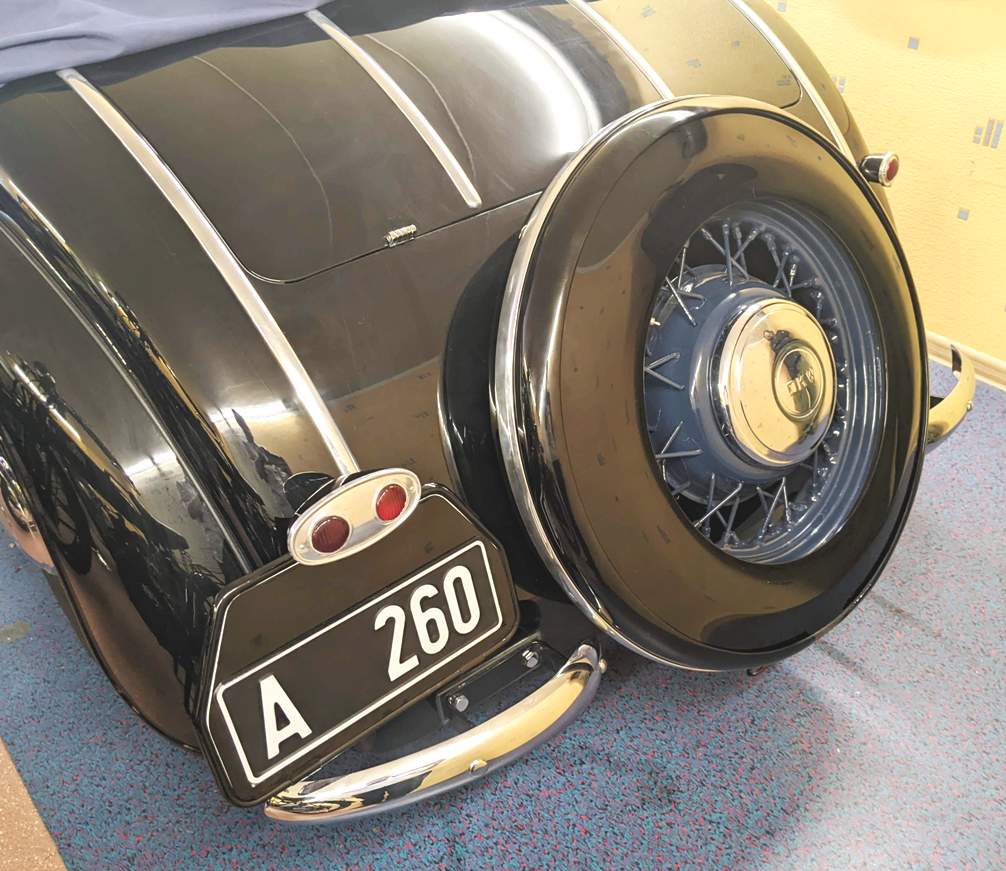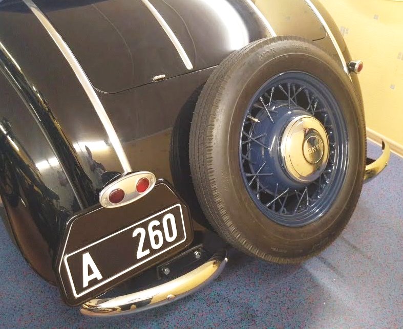 Ajaloolisel fotol on näha DKW F7 Wachsmuthi keretehases valmistatud kerega autol selline tagavararatta kate.