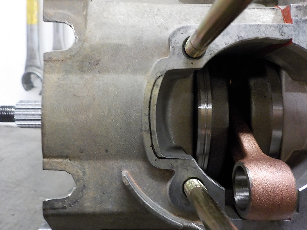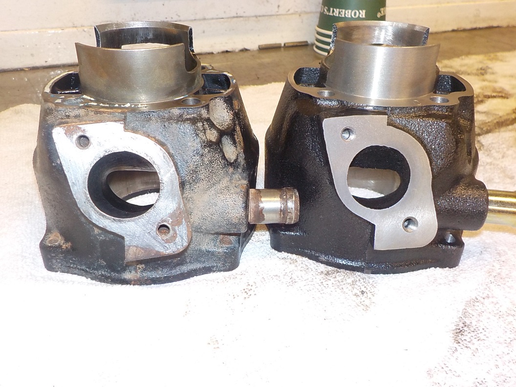 Nagu näha, on gaaside küljekanalid ebavördsed, sest sama mootorit kasutaval teisel masinal (mingi roller) jäi silinder millelegi pumbale ette ja siis tehti sinna lohud sisse: