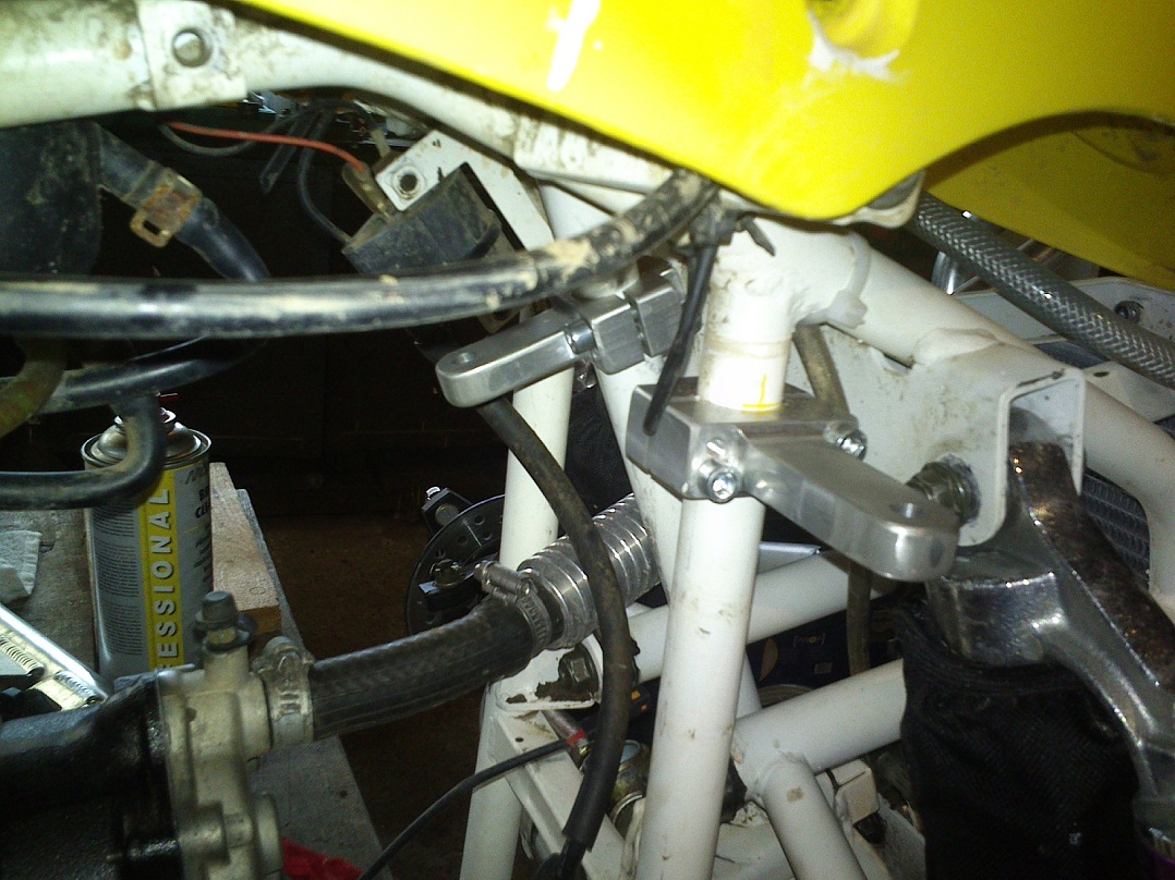 Väljafreesitud rooli-amordi kinnitustele sai siis ka kohad leitud, kuhu nad mahtusid, suht kitsas on see "elamine" sellel 100 ccm masinal: