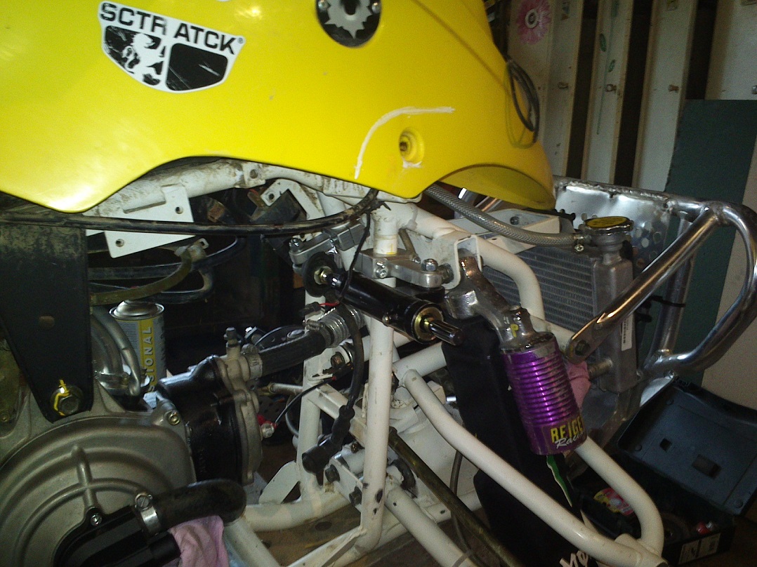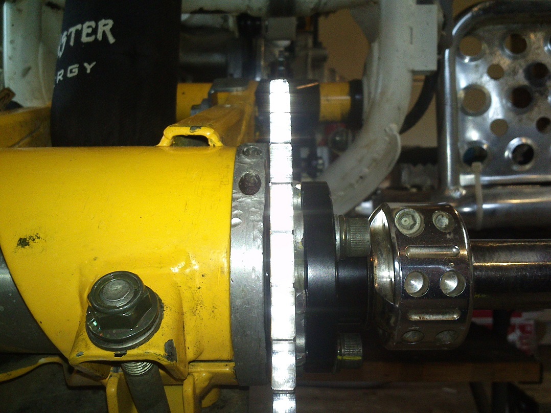 Quadi kokku pannes sai vahepeal takistuseks ketimajandus. Eelmise esiketihammakaga sai kinnitus vaheseibiga mitmeid millimeetreid väljapoole toodud, et hammakad kenasti joonel jookseks. Sellel aastal aga panin ette Lätis järgi-tehtud (parem kui originaal, nagu eespool kirjeldasin) hammaka koos hoidjaga ... enam vaheseibiga liigutada ei mahu, lihtsalt ei ole niipalju keeret völli otsas. 6 mm oleks aga tarvis liigutada. Sai siis pandud 1 mm seib esihammaka hoidja taha, niipalju mahtus, ning hoopis tagahammakas rummu poole viidud 4mm (rohkem ei julgenud). 1mm jääb ketilötkul leevendada