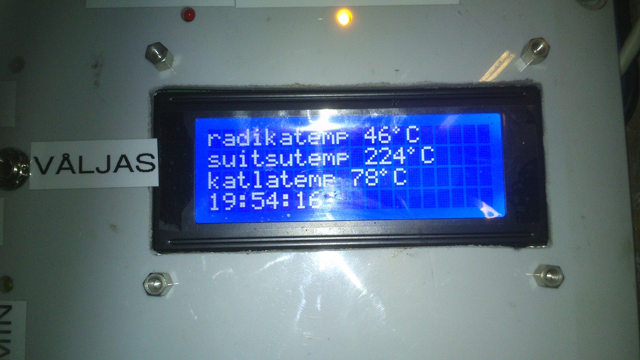 Soojusvaheti kavatsen suitsutorule siiski peale ehitada, sest 20-30 kraadi peaks kannatama sealt ära võtta. Kuna temperatuuri mõõdab elektroonika, siis võin ka sellega vajadusel ventikat juhtida, et toru liigsel jahenemisel vent seisma panna. Viitsimise korral saab lausa vendi pöördeid sujuvalt muutma panna jne. Puukuivati jaoks on sooja lufti ikka väga tarvis.
