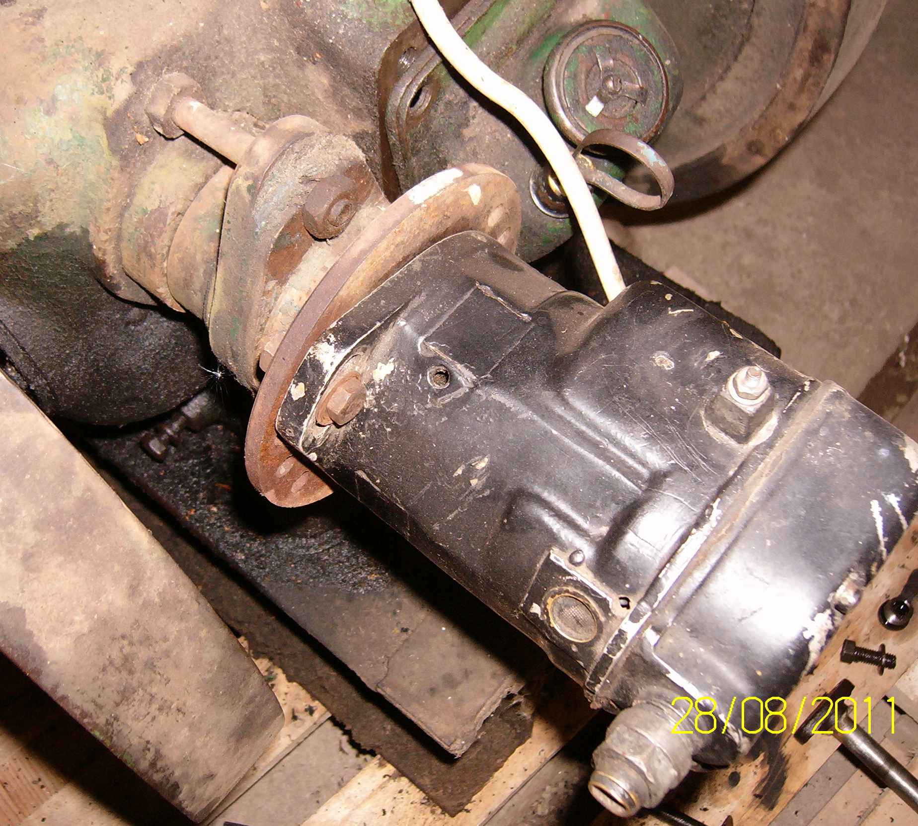 Deutz, tõenäoliselt MA 711. Ühtegi silti ei ole säilinud, ainult neediaugud. Kolvikäik 110mm klappis juba siis, kui ma seda küünlaaugust mõõtsin. Peale silindripea mahavõtmist tekitas aga hämmeldust silindri läbimõõt 102 mm. 100 asemel. Nüüdseks on kolb väljas ja ajaloo stsenaarium on minu arust järgmine: hülss on üle puuritud ja sisse on pandud NSVL- aegne kolb koos rõngastega. Kaks ülemist rõngast olid kinni, kuid pärast nädalast naftapangis ligunemist olid nõus üks ühel ja teine teisel päeval liikuma hakkama. Mõistatuseks on aga jäänud, et mis masina kolb on ära kasutatud? Detaili number algab 66-ega. Gaz 66 see olla ei saa, tollel on kolb läbimõõduga 92, nagu gaz 53-l või kõigil volgalistel. Igasugused Zahaarid ka nagu ei sobiks.