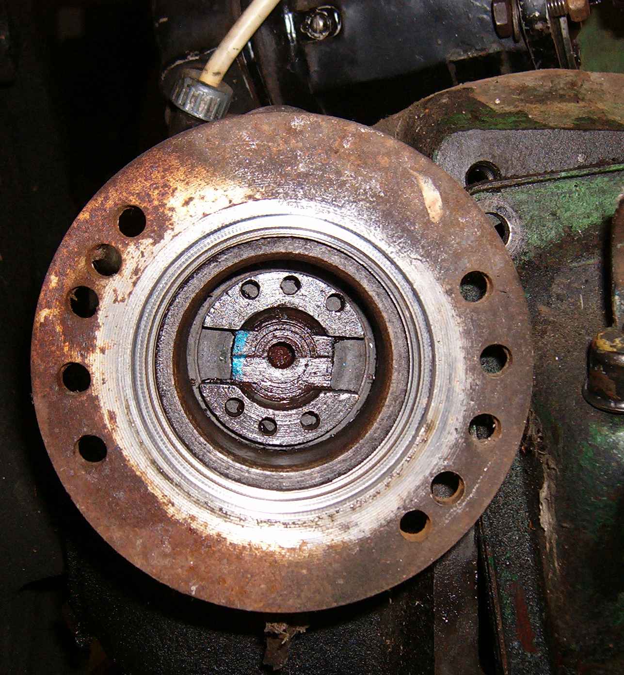 Otsastvaade - sõgavuses paistev võlli ots tundub olevat originaalvõll.