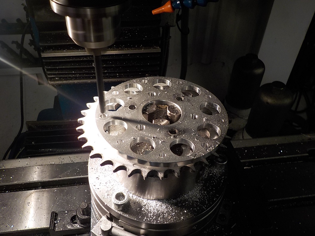 Kasutan ühe ketiratta sisu ja siis vajaliku ketiratta välisosa polditult sisu küljel. Sisse trein 1 mm sügavuse ääriku, et välisvöru ikka tsentris põsiks kui kinni poldin.