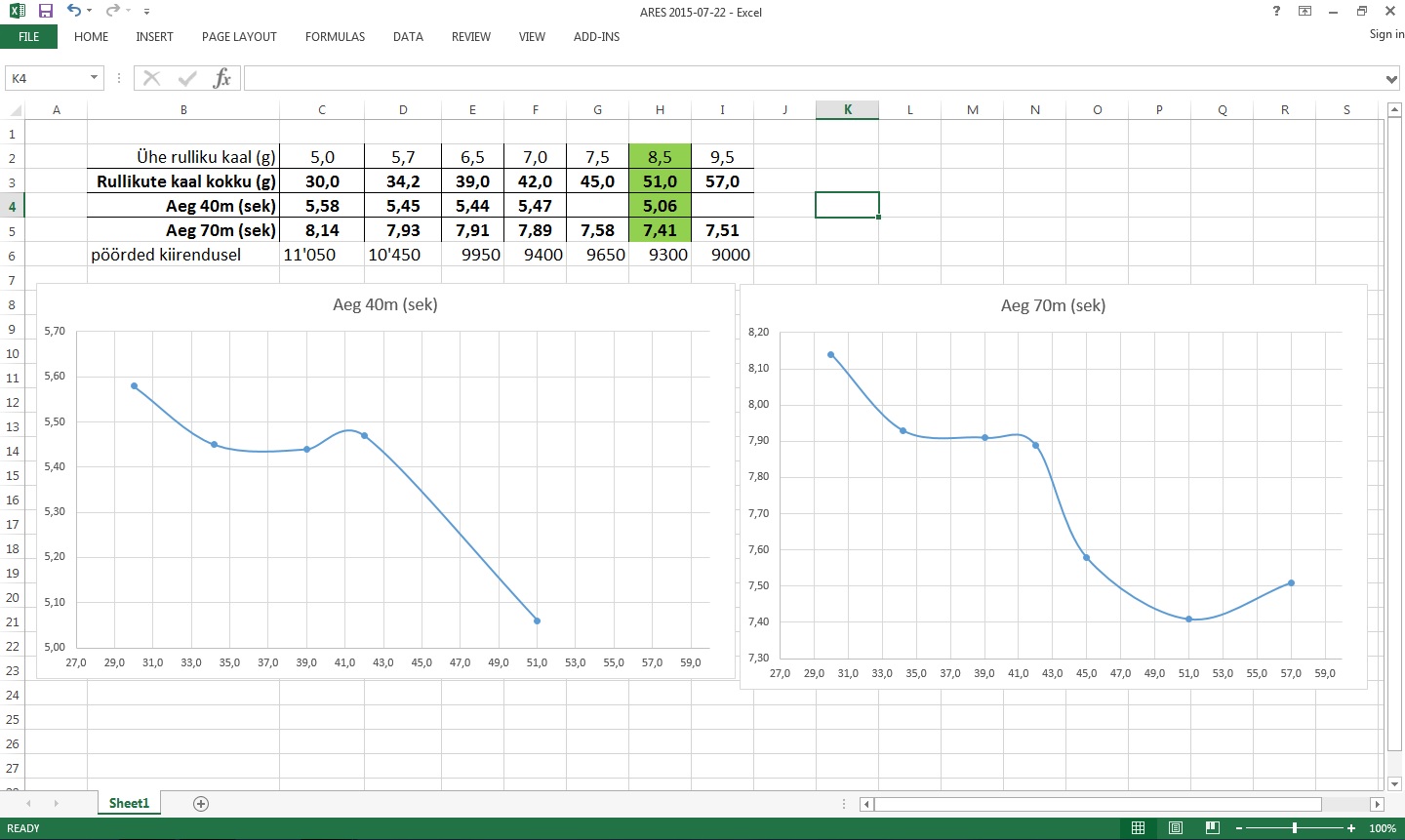 Eelmisel aastal oli magusaim aeg 8,5 grammiste rullidega ja mootori pöörded kiirendusel 9300.