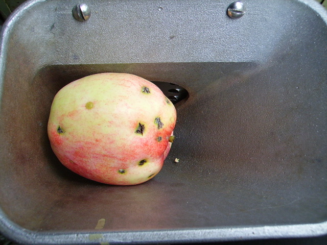 Oleneb riivi pööretest (mingi aeg tsentrifugaaljõud teeb oma töö) või survest õuntele (metall on metall vs õun)