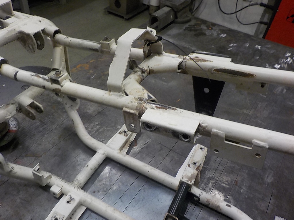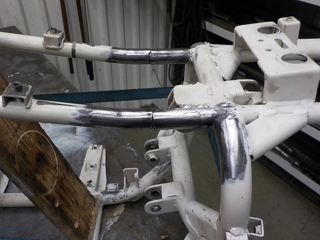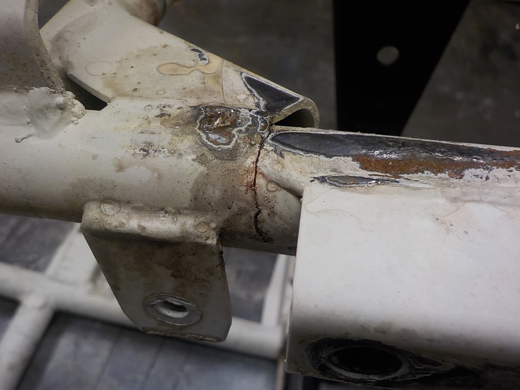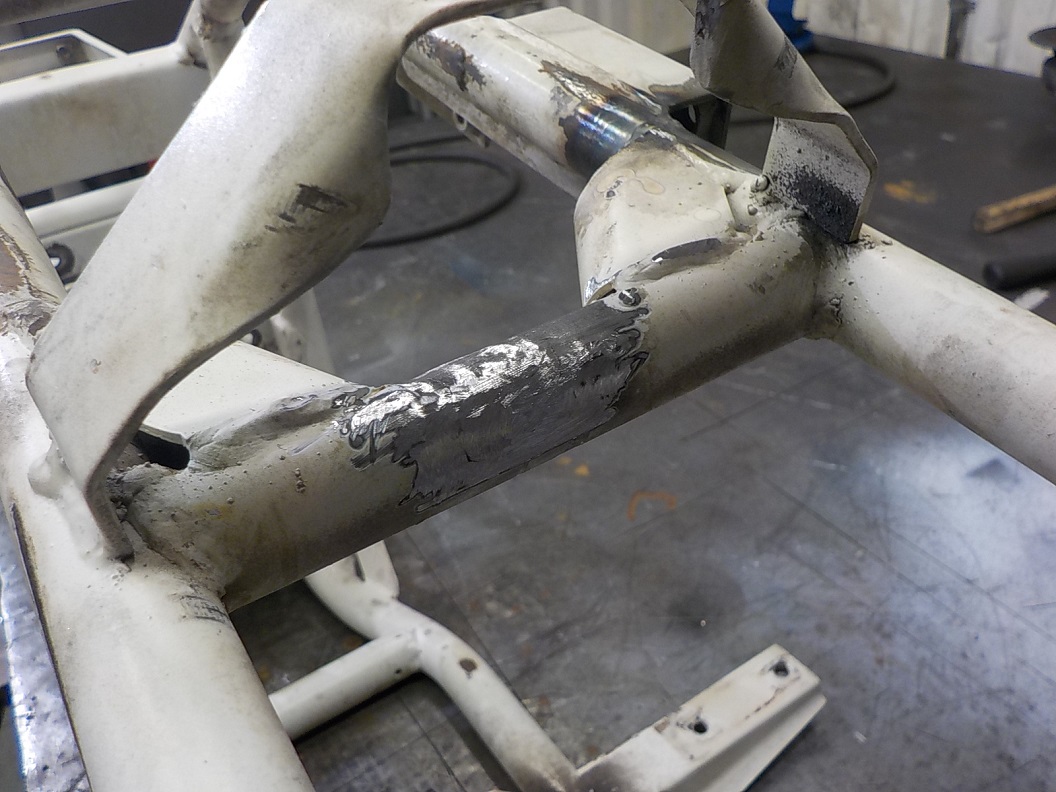 Raami eespool on samuti toru katki läinud, kuid seda hoidis koos eelmisel keevitusel lisatud servi tugevdus toru all. Siiski, tuleb ka sealt nurgatugevdus eemaldada ja kenasti ümbert-ringi kinni keevitada, siis uus tugevdus sisse.