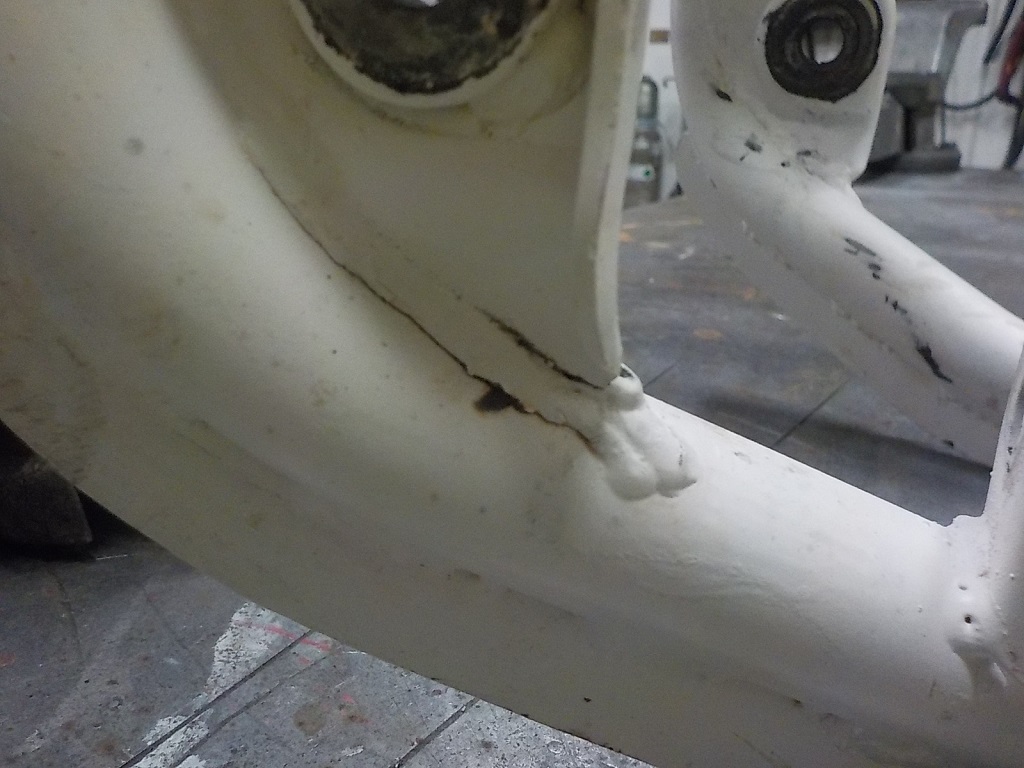 Leidsin veel möned kohad, mis on pooleksolnud raamiga söitmisest tingitult tekkinud. Üks on tagakiige kinnituse juures ja teine sealt, kus raam köige rohkem paindumist sai kui ülalt katki oli söidu ajal (tagapidurisilindri kinnitus):