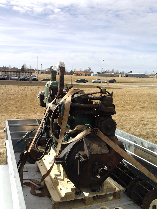 Täna varahommikul päästsin ka vene trossidega ekskavaatorilt Jumzi mootori, töötunde 1906 ja väljalaskeaasta 1990. Käis nagu antsu viiul ja ei raatsinud teda mitte sinna jätta. Mahamonteerimine oli üllatavalt lihtne ja võttis kuskil tunni. eelnevalt olin kodus kaubaalusele teinud ka hoidmiseks täpselt sobiva raami. Sain terve komplekti, mootor koos kõikide vajalike jupinatega ning ka radiaator ning käivitusmootor.