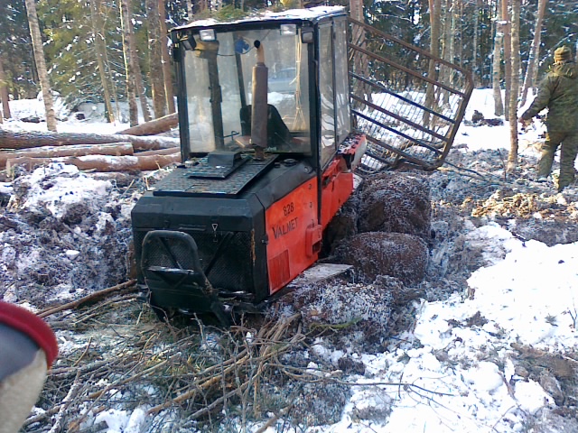 Selline masin ei tohiks ilma vintsita metsa minna. Teise traktori vintsi tross külge ja küll ta välja tuleb.