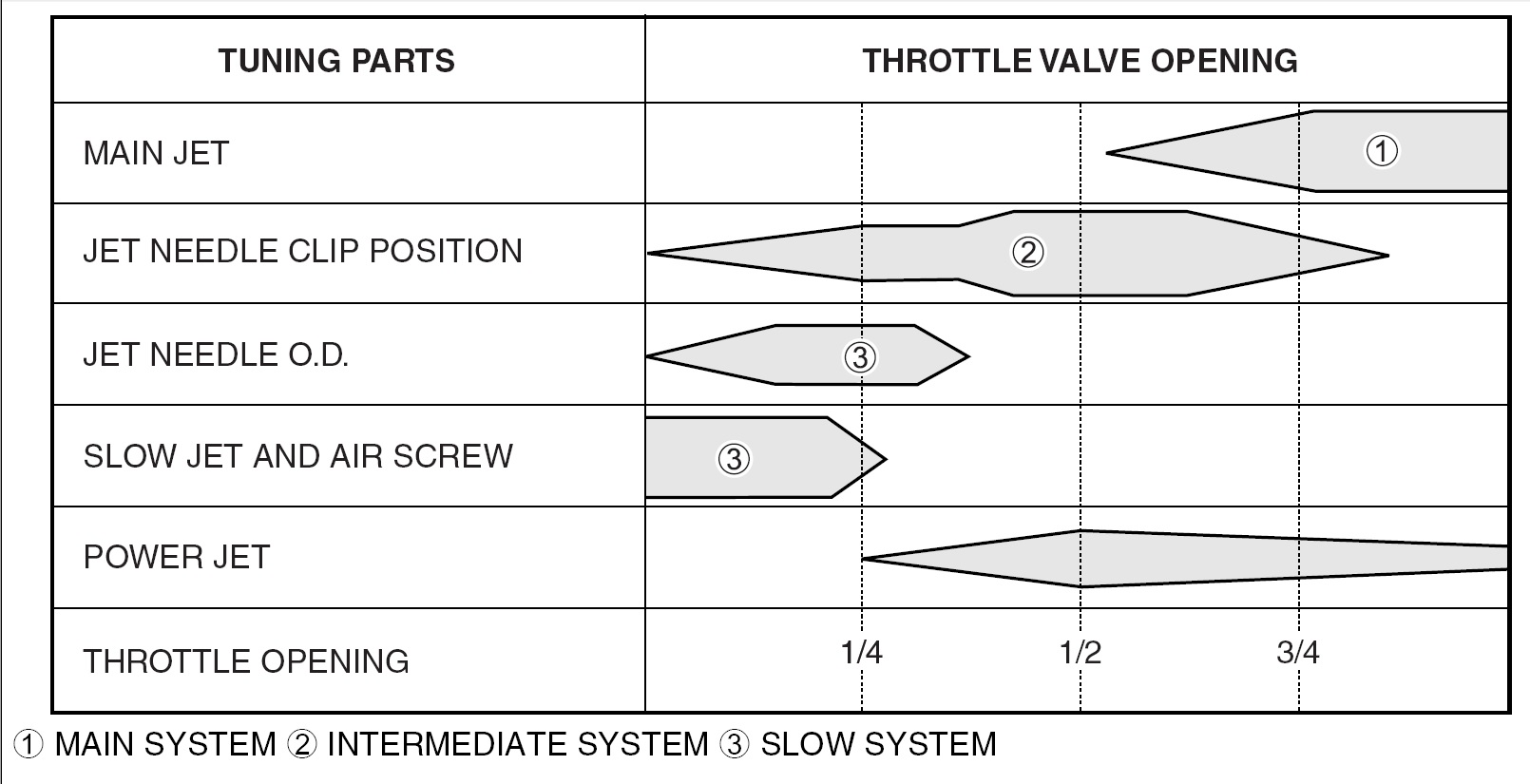 Muidugit mängib ka rolli karburaatori ehitus. Kas Slow Jet on lihtsalt düüs (nagu vanematel karbadel) kust etteantud kogus kütust läbi lastakse ja öhukanal konstantne on (ehk kruviga reguleerid kütust) vöi vastupidi. Vöi on Slow Jet kütuse ja öhu düüside segu:
