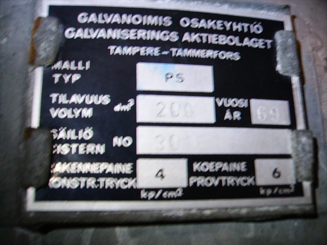 Mul garaazis on sama tootja ja tegumoega 650L paak, millel oli sama testrõhk kirjas. Sai punnid ette pandud avadesse, vett täis ja tavotipritsiga survestatud. Ühe tupikpunni külge oli pandud määrdenippel. Ajasin surve 20 natuke pluss BARi peale ja miskit ei juhtunud. Peale seda paak kasutuses.