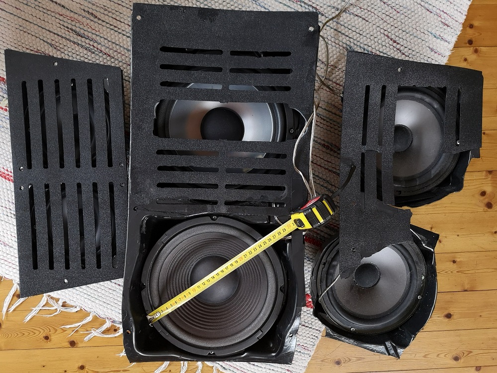 Järgmist jäätmeringi jäid ootama kõlarisisud. Äkki arvab keegi vajaliku olema ja ei peagi prügikasti täitma? Panime raadiole sappa, tegid häält küll. Kokku 6tk, kõik erineva suurusega.
