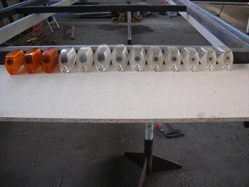 Nüüd, teisel pildil kui lampe eestpoolt vaadata, näeme, et klaasidel oleva luubi suurus on erinev. Vanematel tuledel 1-5 on luup suur, 6-7 keskmise suurusega, 8-9 pisike. Siinkohal ka valik klaase