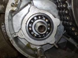 Aga mina olen teinud sellise poldi ja mutriga vahetüki, mis käib selle raudlati ja võlli otsa vahele. Ja toetus on ikkagi karterile. Isegi siis, kui laager on väntvõlli küljes väga kõvasti kinni, ei tõmba võlli kaasa. Aga nüüd läks vist väga OT-ks ära.