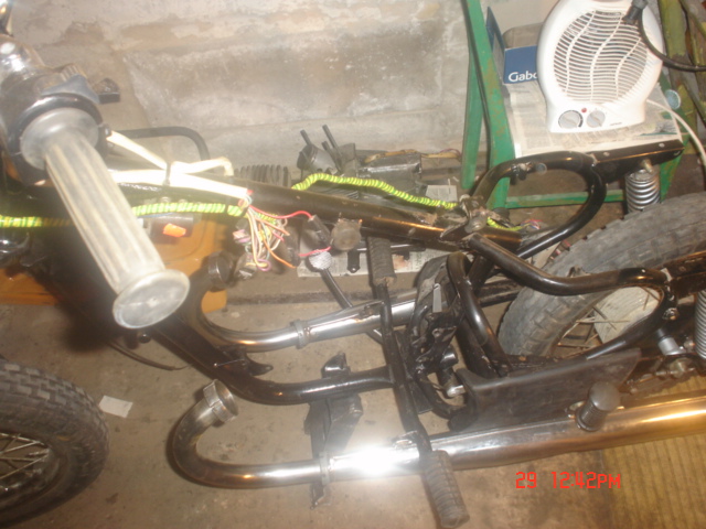 Nüüdseks siis Pärnust õnnekombel väga hea kompressiooniga ja komplektne mootor soetatud.Müüa andis kaasa veel igati kõlbulikud summutajad ja leegikad.Sai mootor peale pandud ja laibarauad värvitud.Käima veel ei hakka ajama sest puudu veel õhupuhasti(kui kellelgi pakkuda siis andke julgelt teada).