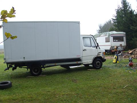 Autoks soetatud lõpuks MB410. furgoon. Eraldi kongiga masin sai võetud mitmel põhjusel. No üks asi oli muidugi, et see oli saadaval ja hind mulle sobis. Teine asi oli see, et kong on konkreetse kandilise kujuga ja elamist sinna sisse ehitada on palju lihtsam. Kolmas põhjus on niiskus. Olen nüüd piisavalt kaua elanud matkabussis. Eraldasin juhiruumi elamu osast vaheseinaga, et mitte niipalju ruumi kütta. Sinna juhiruumi aga tekkis metsikult niiskust. Kui juba eraldasin, siis olgu ta täiesti eraldi see kabiin ja nii läkski. Ruumi on ka furgoonis rohkem, kuna laius on suurem.