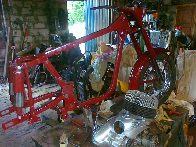 Kuna see seltskond kus mina tegev olen ehk UnicMoto, on kõik natuke diagnoosiga,siis oleme jõudnud järeldusele asju mitte üle restaureerida.Nii et karter värvitud ,kaaned läikima nühitud.Klaaskuul on muidugi väga edev,kuid sellel ajal kui see ratas tehti,sihukest asja ei tehtud.