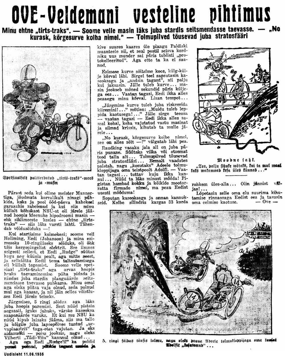 Ove uus NSU (Rahvaleht 21.08.1936) ja Rudge (Vaba Maa 08.06.1937):